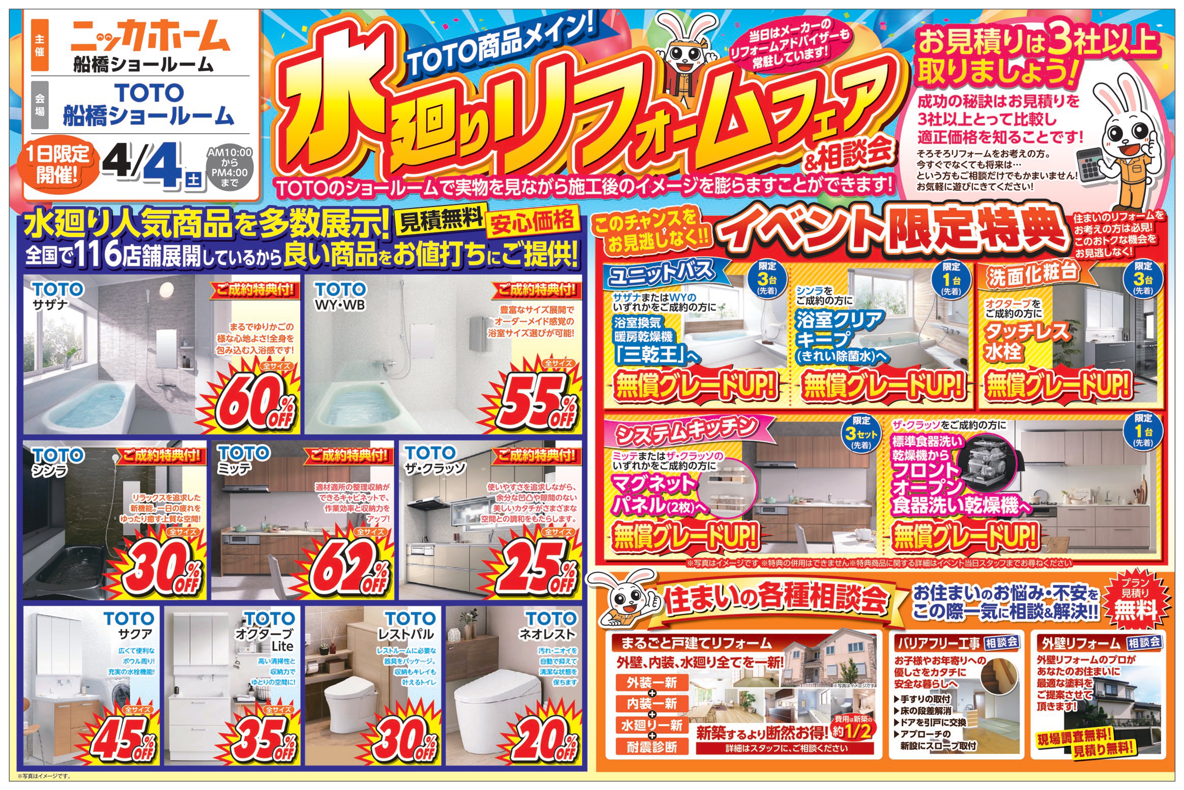 イベント当日は、人気の水廻り商品を特別価格でご提供いたします。