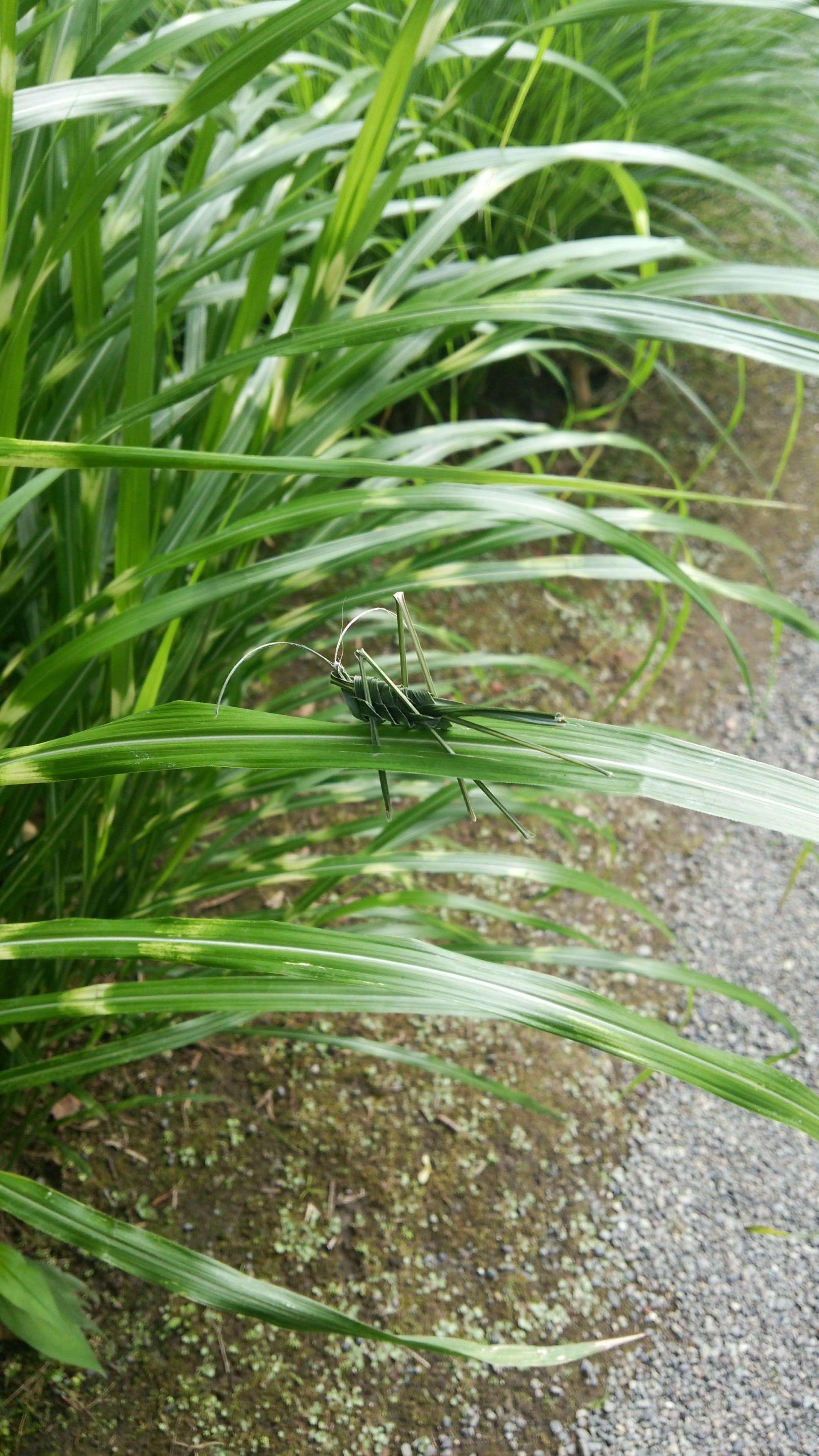 草を編んで作られたバッタということのギャップに楽しさがあります。