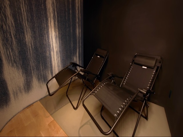 内気浴エリアは、レジデンスとしては希少な、非日常的で没入感のあるリラクゼーション空間を目指して設計しました。壁紙には滝の写真を採用し、冬季でも心身ともに深くリラックスできる環境を演出しています。また、外気浴エリアにはリラックス効果を高める植栽を配置。さらに、サウナ直後の導線上には藻をモチーフとしたインテリアを設け、都市の喧騒を離れ、非日常へと誘う特別なひとときをお届けします。