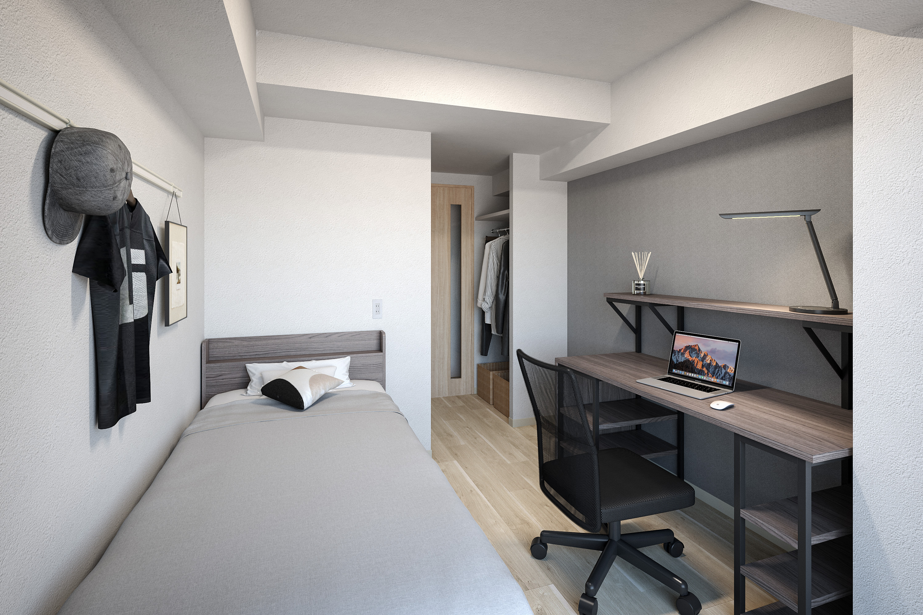 シャワーブース・トイレ付のマンションタイプをご用意。ベッドや2ドア冷蔵庫、洗濯機などの家具・家電に加え、Wi-Fiも完備。引っ越しの手間や費用を抑え、入居したその日から快適な新生活がスタートできます。