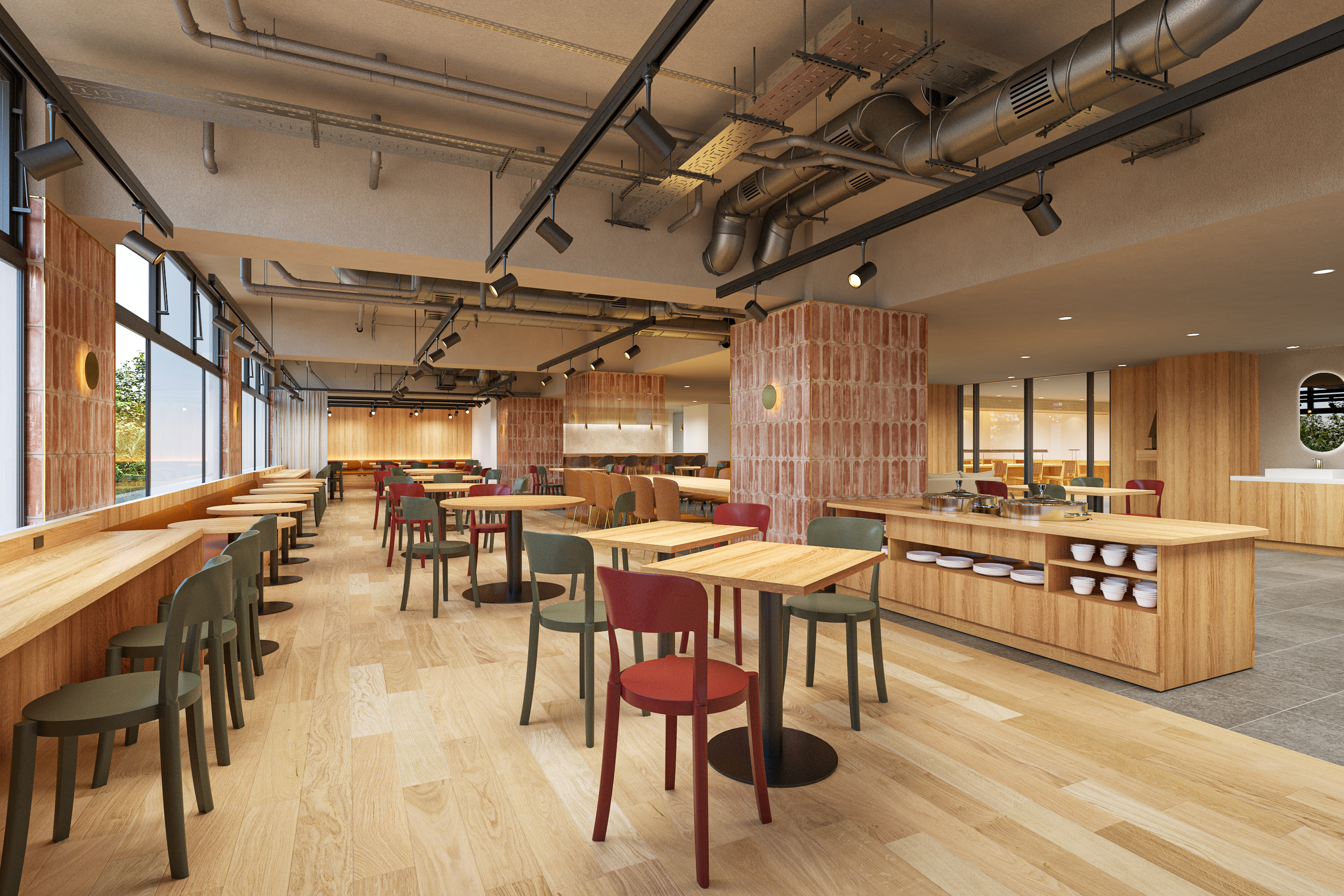 オールデイダイニング/キッチンコーナー/ヒュッゲリビング/ トレーニングジム/コミュニケーションルーム/ラーニングスペース/ スタディルーム(自習室)/ラウンジスペース/防音ルーム/ユニットバス/ランドリールーム(乾燥機のみ)※男女10台ずつ完備予定 |
