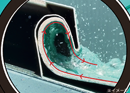 そこで、「元旦ルーフ83」では、あえてハゼに空間をつくり(名称:渦巻ハゼ)、雨水の跳ね返りを利用して汚れを排出します。さらに、ハゼ空間に金具を引っかけて雪止めや太陽電池パネルなどを屋根に穴をあけず、傷付けずに設備を設置することができます。