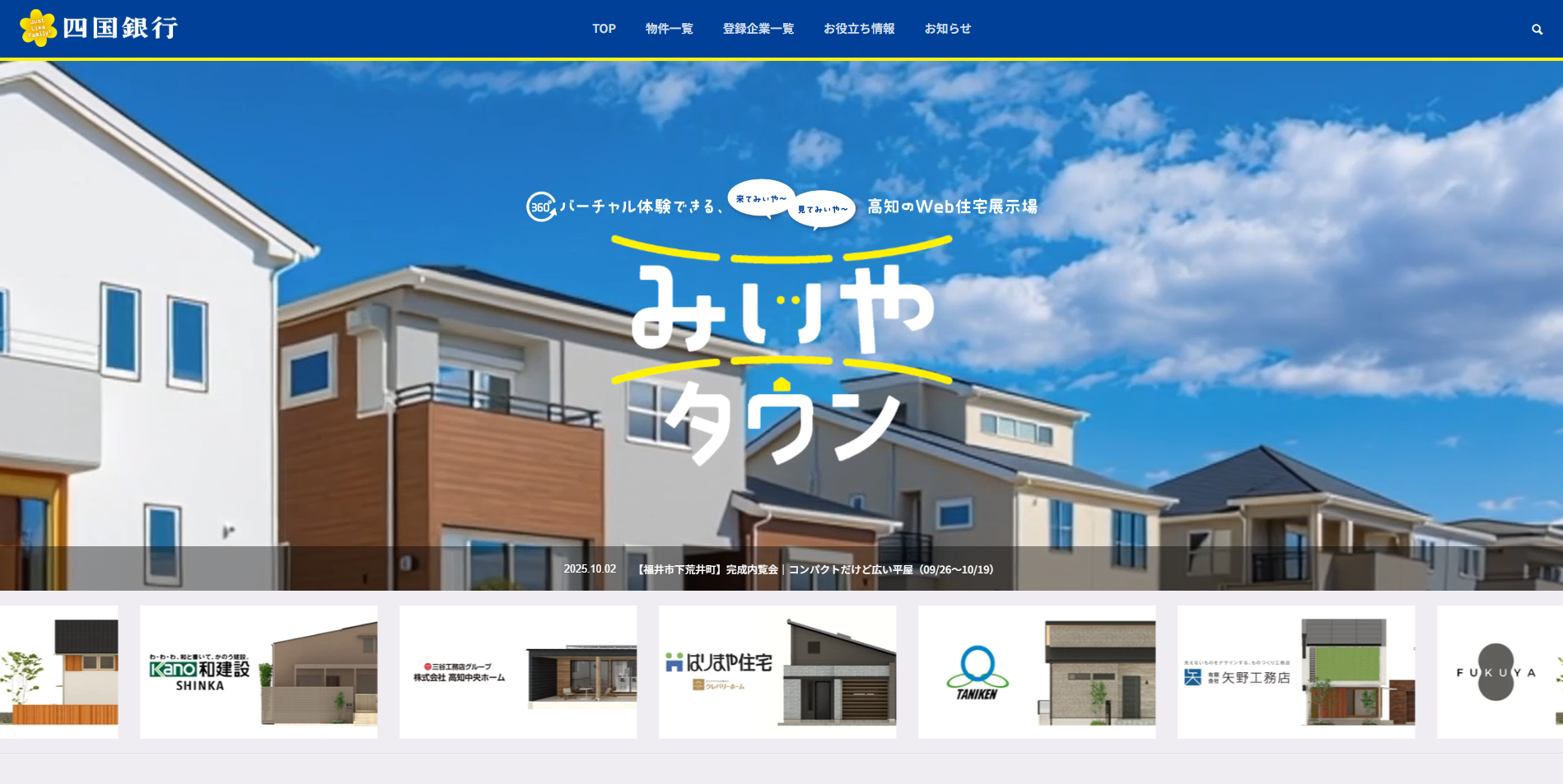 『四国銀⾏ みいやタウン』は、⾼知県内の住宅事業者がプロデュースした3Dモデルハウスを、パソコン・タブレット・スマートフォンなどから24時