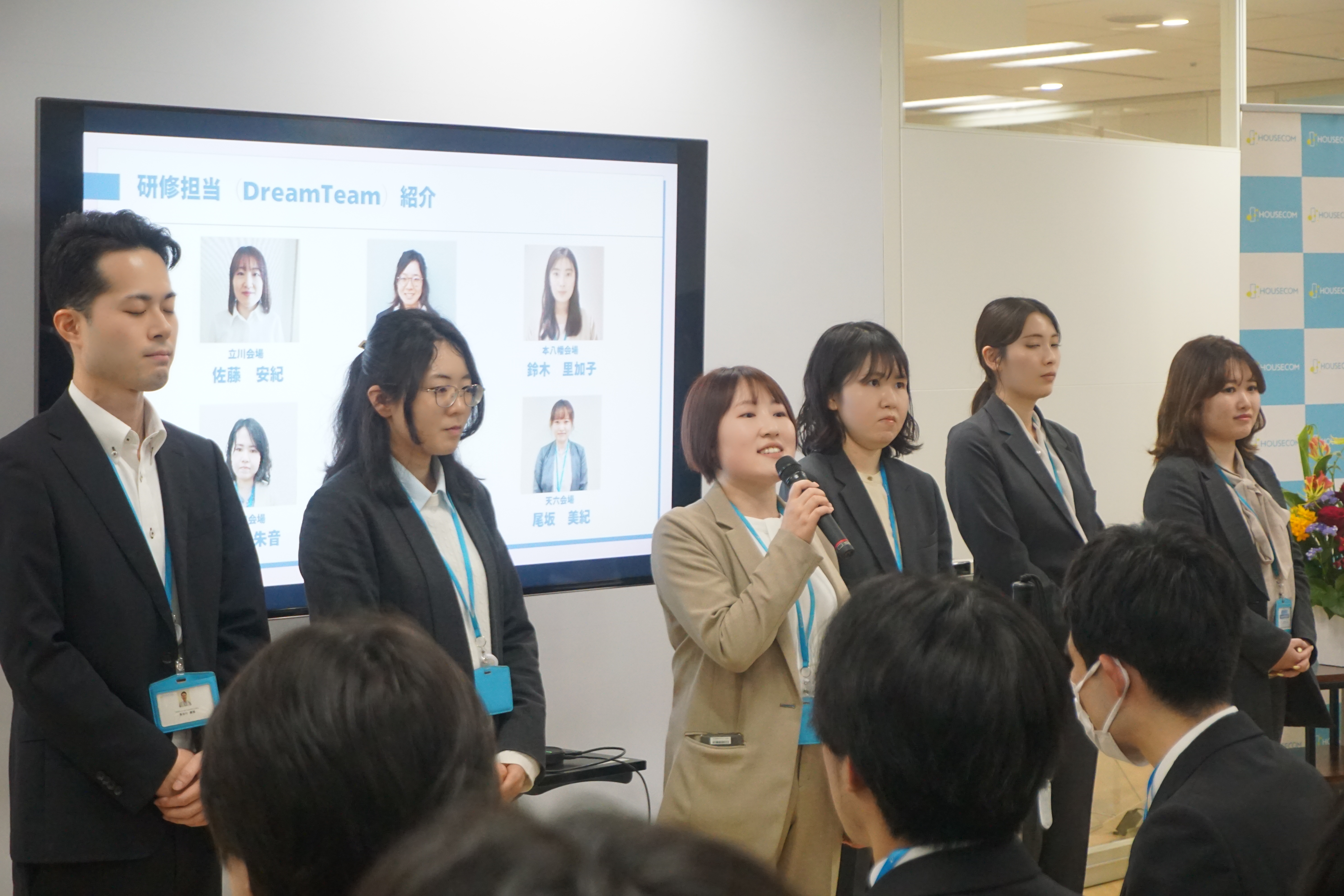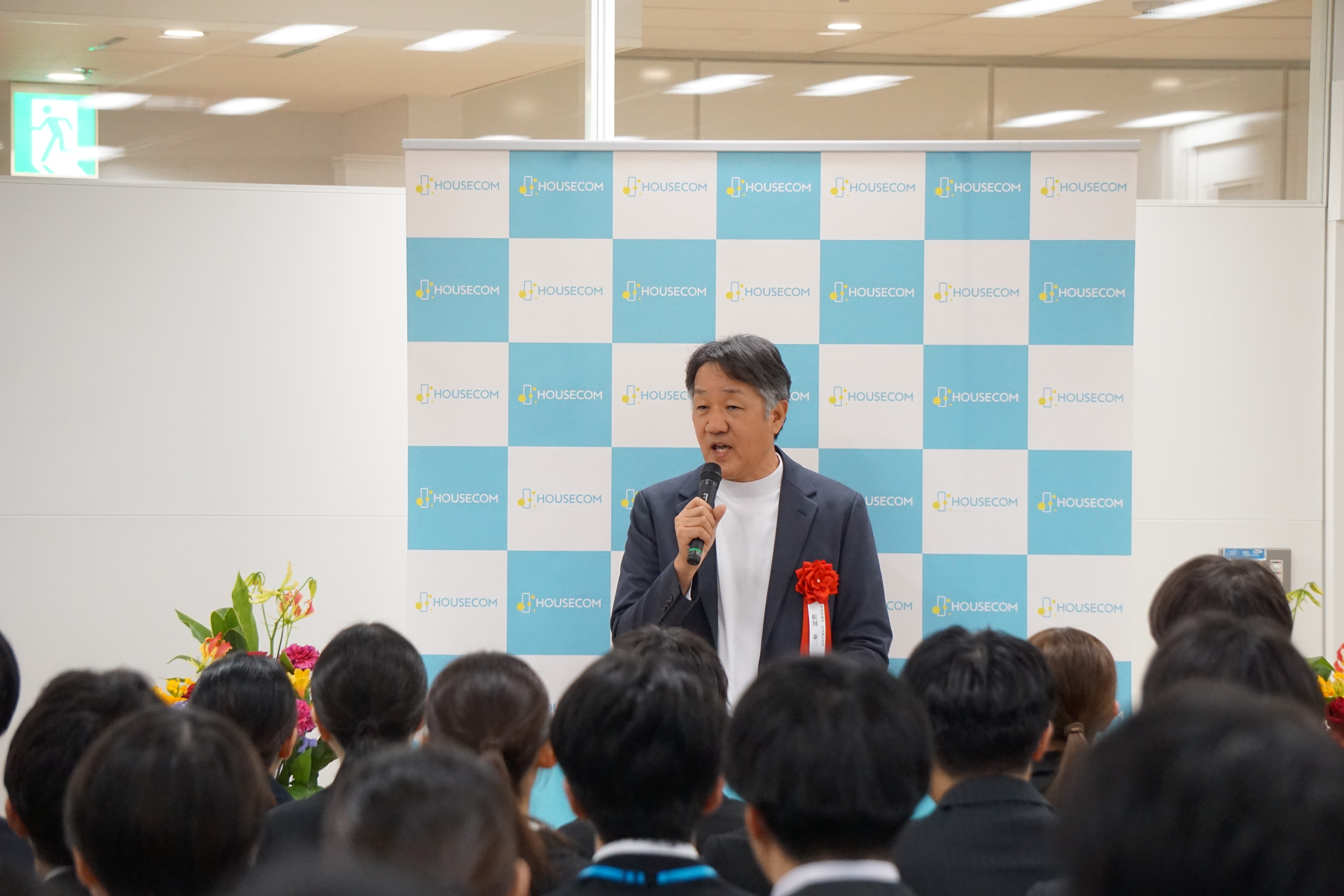 私も皆さんと同じフレッシュな気持ちで、今日この場に立っています。皆さんが信頼されるプロへと成長していくことを期待しています。共に、新しいハウスコムを作っていきましょう。よろしくお願いします。」
