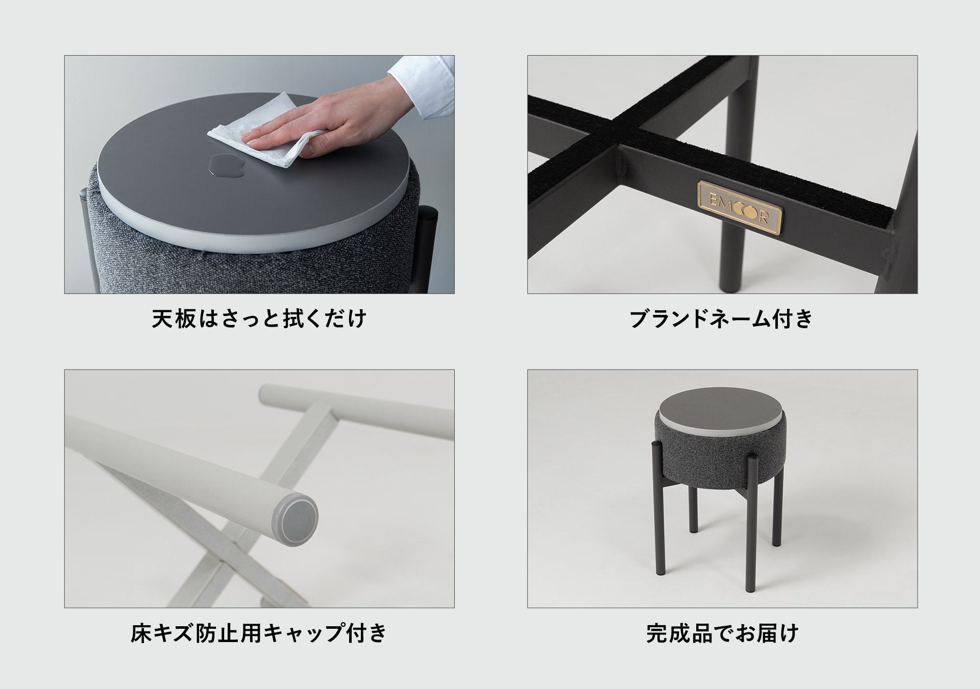 TATAMUⓇを運営するのは、健康家具ブランドEMOOR(エムール)。寝る・座るの専門家集団です。スツールとして使う時は、ほどよい弾力のクッションがしっかりとした座り姿勢をサポートします。