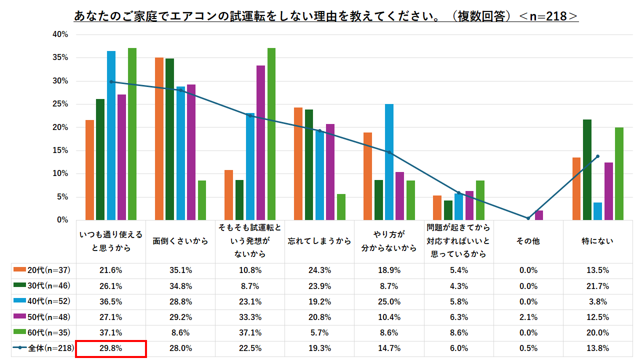 1.半数以上がエアコンの試運転を実施せず。年代による「意識の差」も。