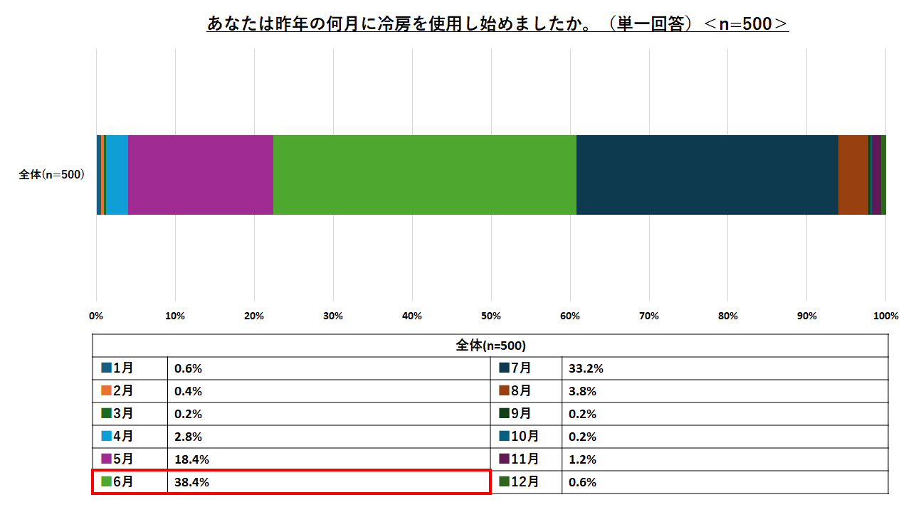 • 昨年の冷房使用開始時期は「6月」が最多。夏のエアコン使用時間は1日平均約11時間。