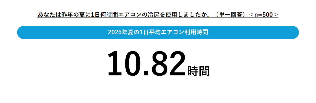 昨年の冷房使用開始時期を調査したところ、最多は「6月」(38.4%)となりました。また、夏の1日あたりの平均使用時間は「10.82」時間と、1日の中で長時間エアコンを稼働している実態が浮き彫りとなりました。この長時間の使用状況において、シーズン中に突如故障するリスクを最小限に抑えるためには、本格稼働前に試運転を行うことが、家計(修理・買い替え費用)と快適性の両面を考える上でも重要ではないでしょうか。