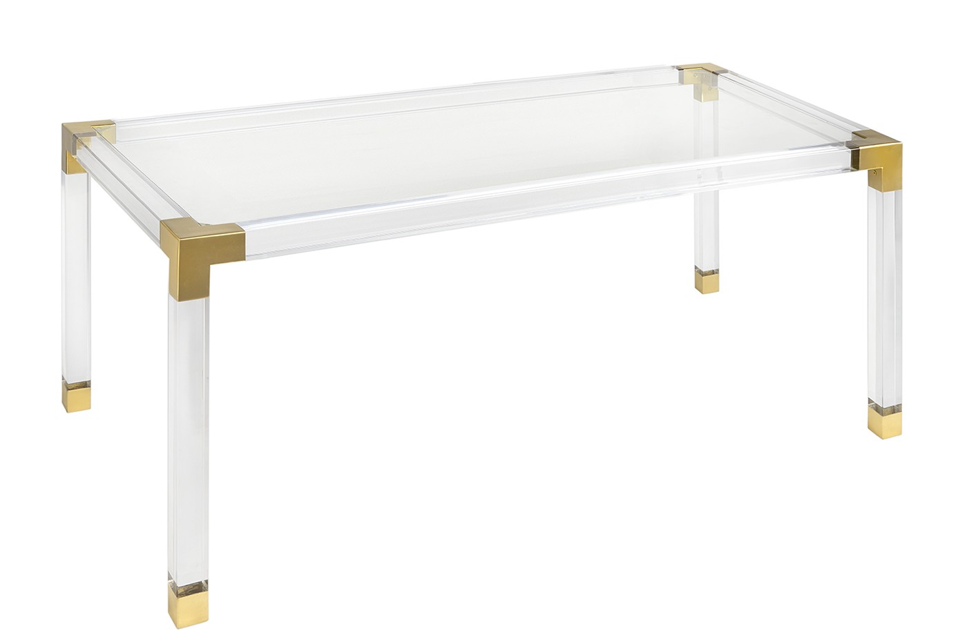 製品名:ジャックダイニングテーブル 製品価格:872,300円(税込) 製品サイズ:W183×D97×H76cm 製品素材:アクリル・強化ガラス・ブラス |