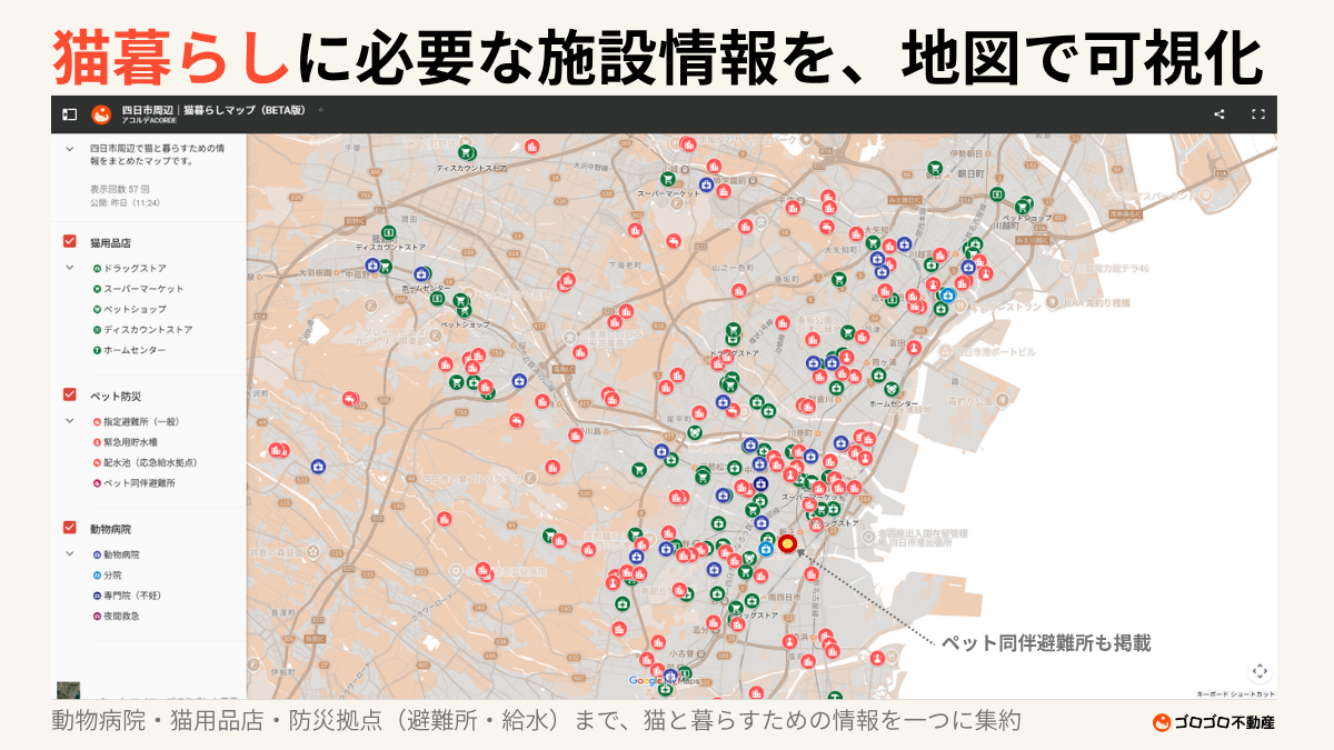 ホーム商品サービス四日市発「猫暮らしマップ」試験公開:猫と共に安心して暮らすための地域情報を可視化
