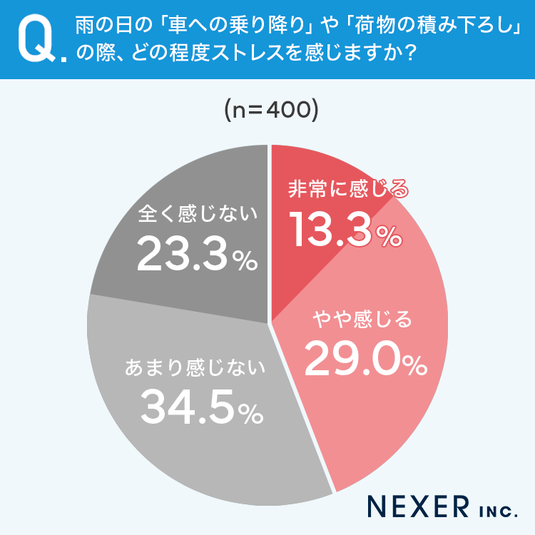 ■42.3%が、雨の日の車の乗り降りや荷物の積み下ろしに「ストレスを感じる」と回答