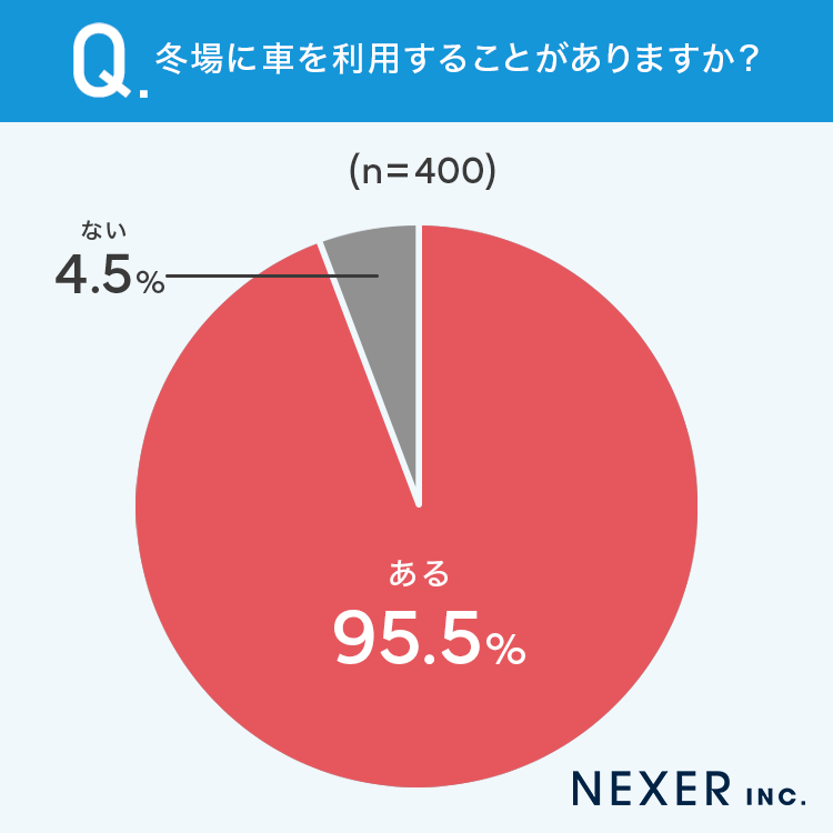 冬場に車を利用することが「ある」と回答した方は95.5%にのぼりました。