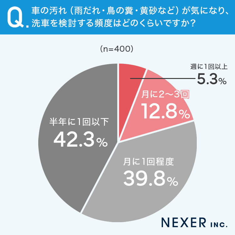 ■42.3%が洗車検討の頻度は「半年に1回以下」と回答