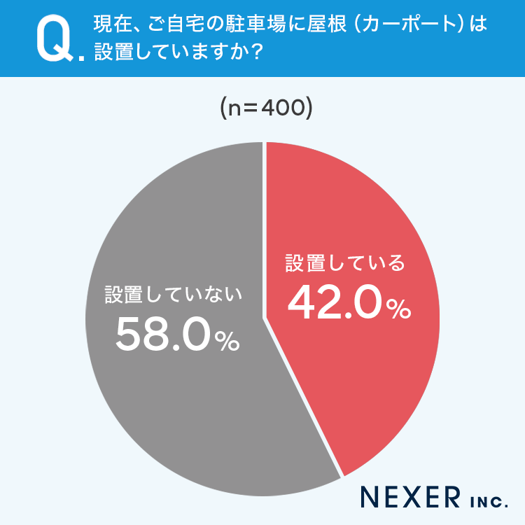 ■58.0%がカーポート未設置。そのうち63.3%が「屋根があればQOL向上に繋がる」と回答