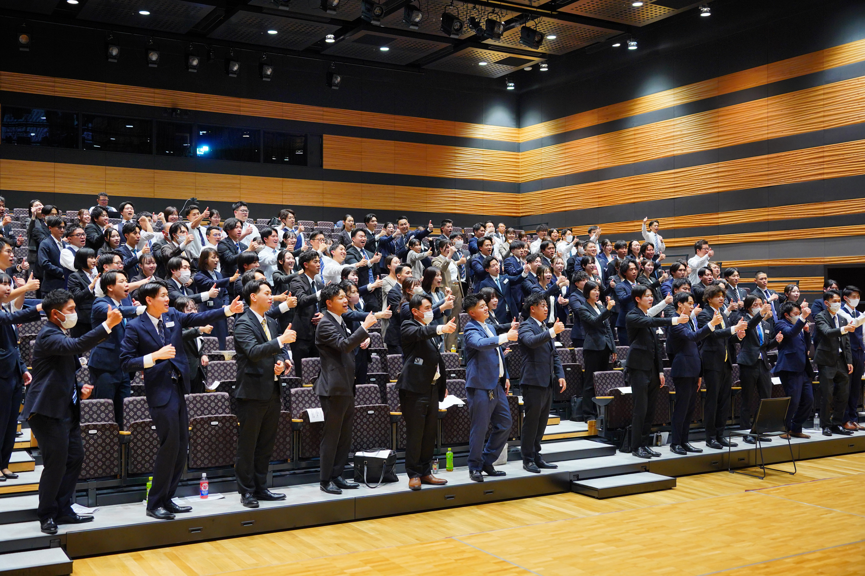 当社ではこれまでも毎年実施してきた体験型プログラム「スイッチオン研修」(提供:株式会社佳論)を、今年は初めて入社式で実施しました。本研修は、声や身体を使った実践を通じて、主体的に行動するための“心と体の状態づくり”を目的としたものです。