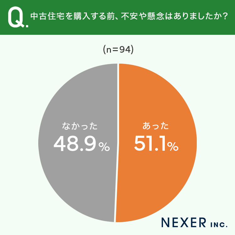 ■51.1%が、中古住宅の購入前に「不安や懸念があった」と回答