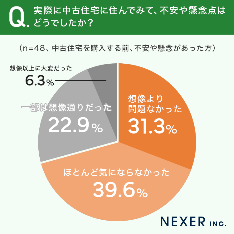 実際に中古住宅に住んでみて、購入前に感じていた不安や懸念がどうだったかを聞いてみました。