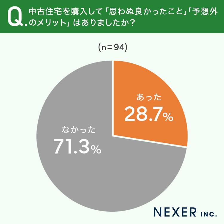 ■28.7%が、中古住宅に「思わぬ良かったこと」「予想外のメリット」が「あった」と回答