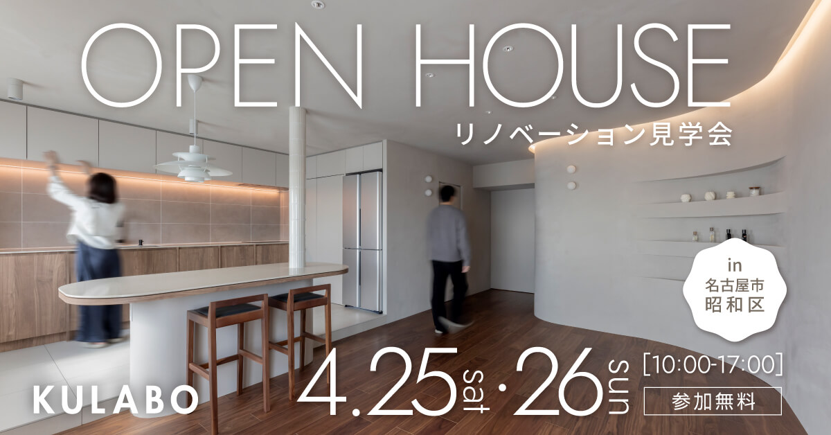 愛知県・岐阜県・東京都(一部エリア除く)でリノベーション事業を展開する株式会社sumarch(本社:愛知県名古屋市中村区、代表取締役:鳥居儀彰、以下KULABO)は、マンションリノベーション見学会を2026年4月25日(土)、26日(日)に愛知県名古屋市昭和区にて開催いたします。