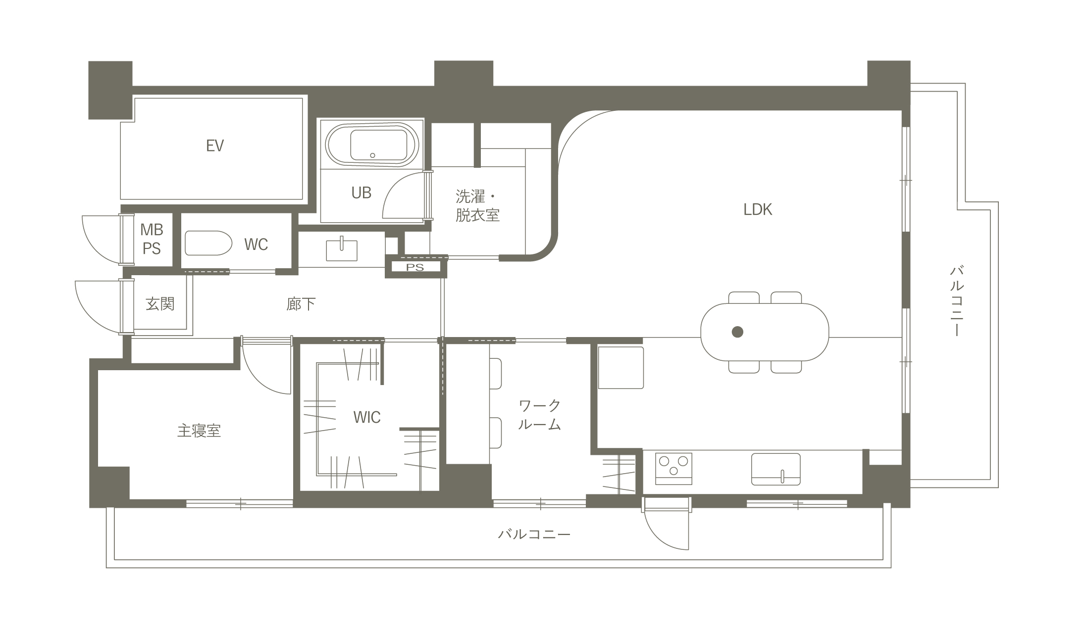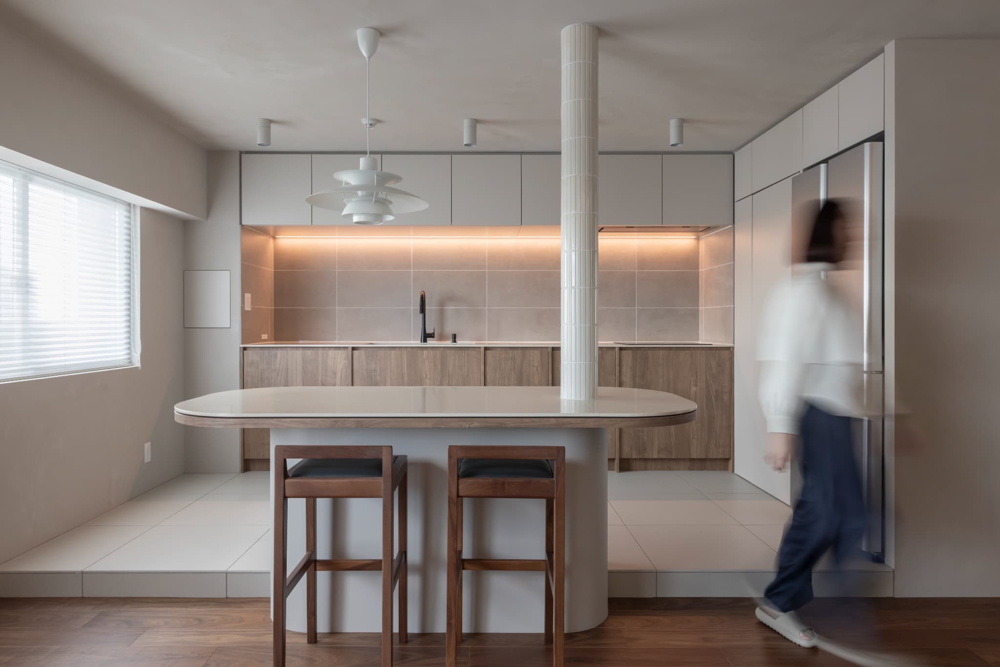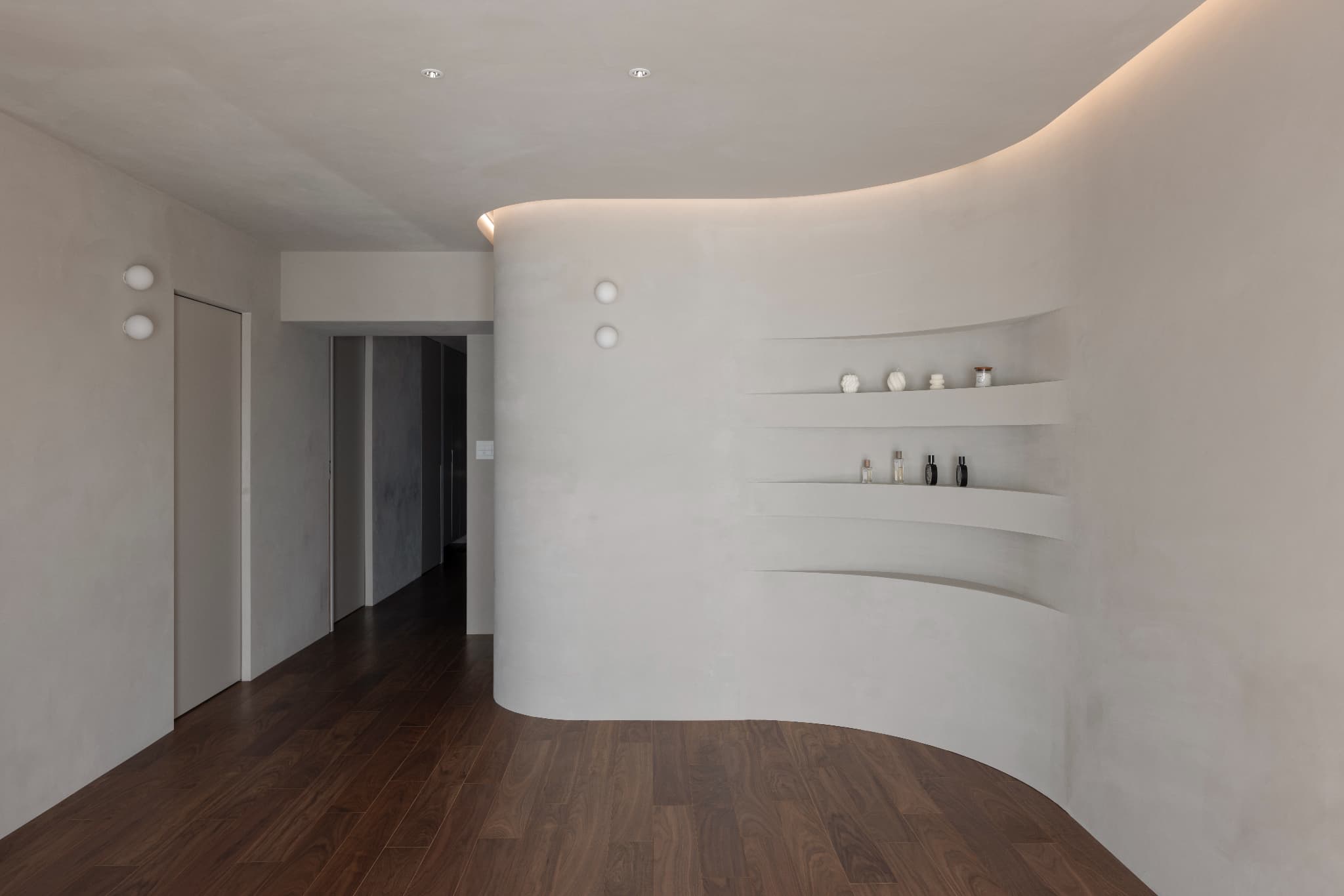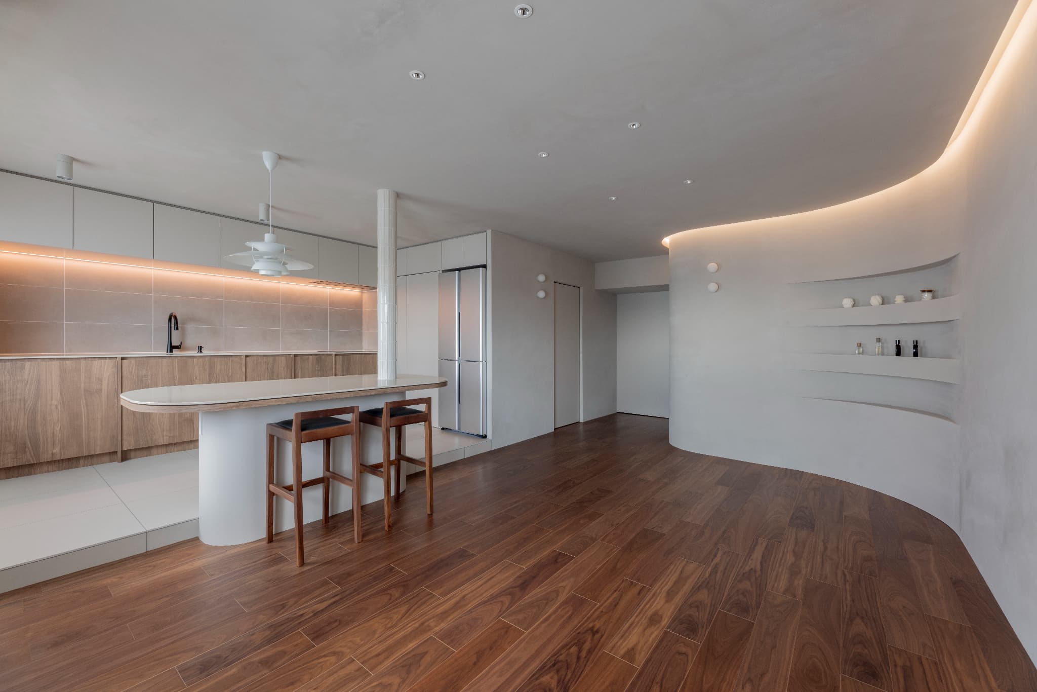 ■曲線の壁と間接照明がつくる、やわらかく開放的なLDK