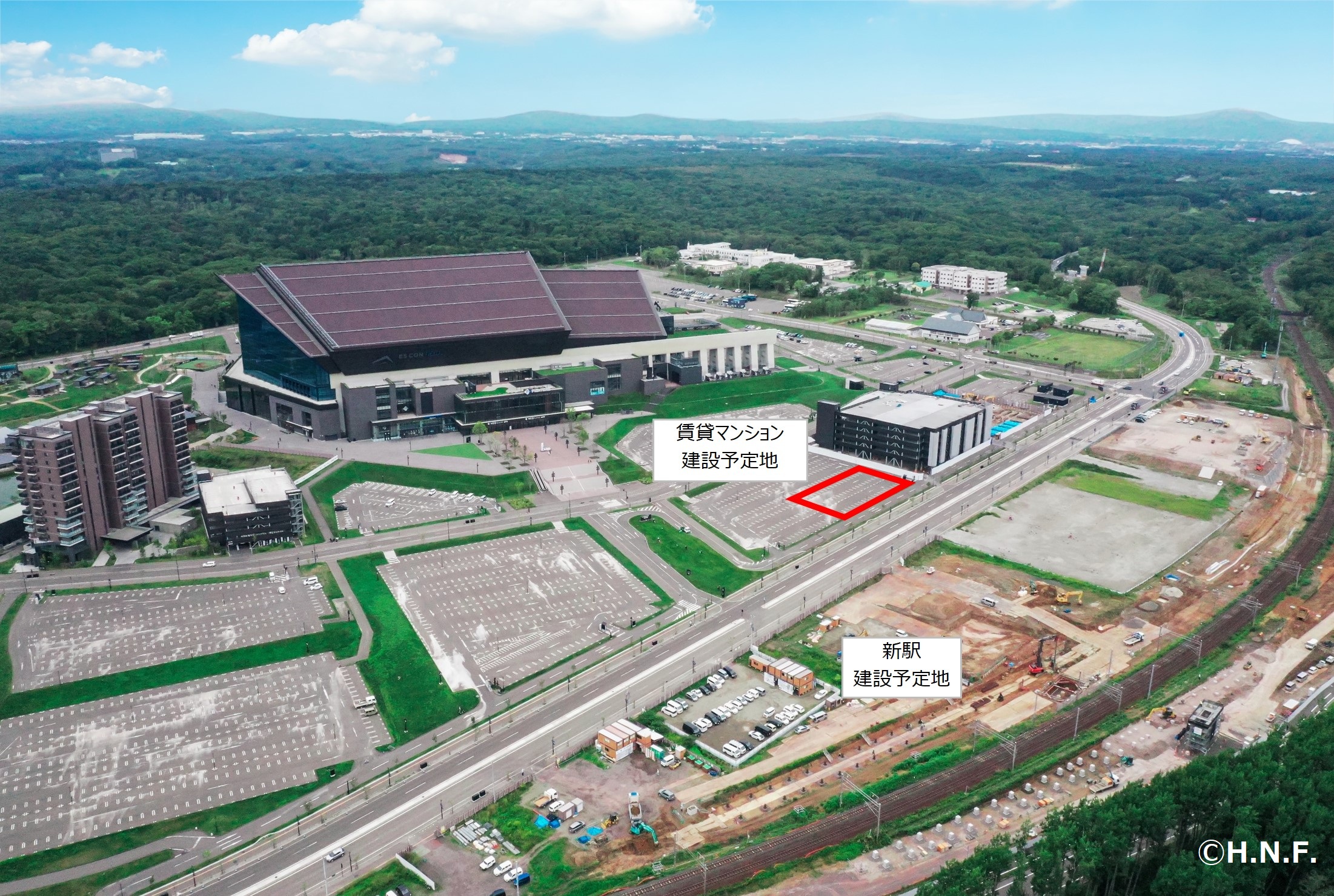 JR千歳線新駅から徒歩3分(予定) 「ES CON FIELD HOKKAIDO」から徒歩4分(予定) |