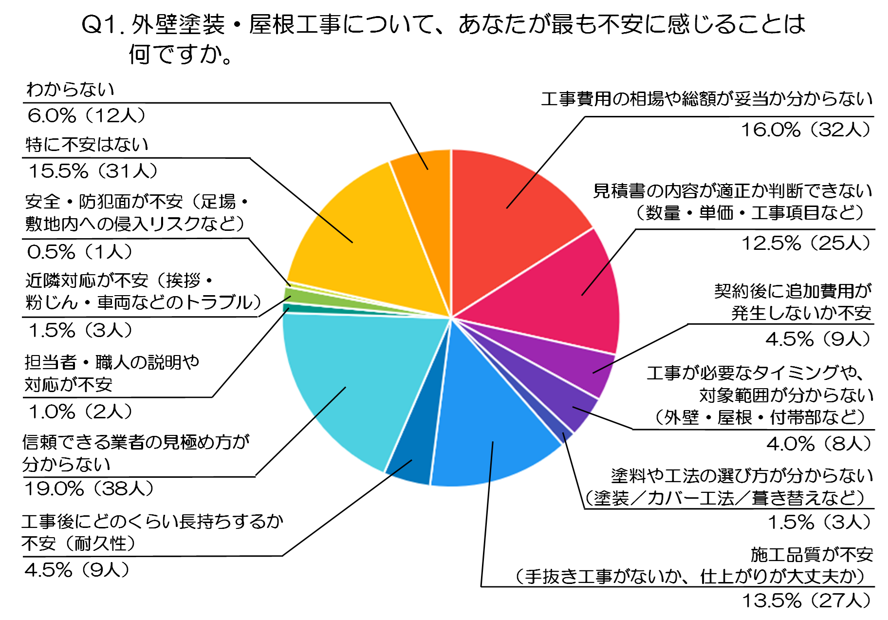 Q1.外壁塗装・屋根工事について、あなたが最も不安に感じることは何ですか。