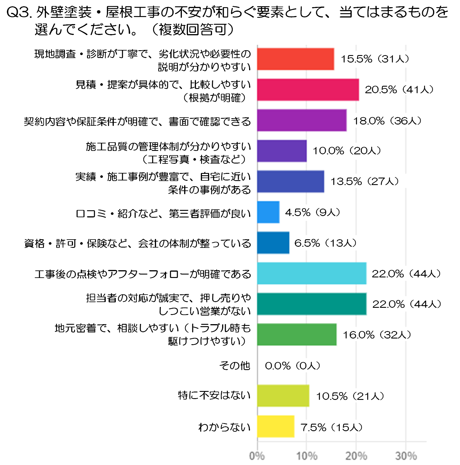 Q3.外壁塗装・屋根工事の不安が和らぐ要素として、当てはまるものを選んでください。(複数回答:注2)