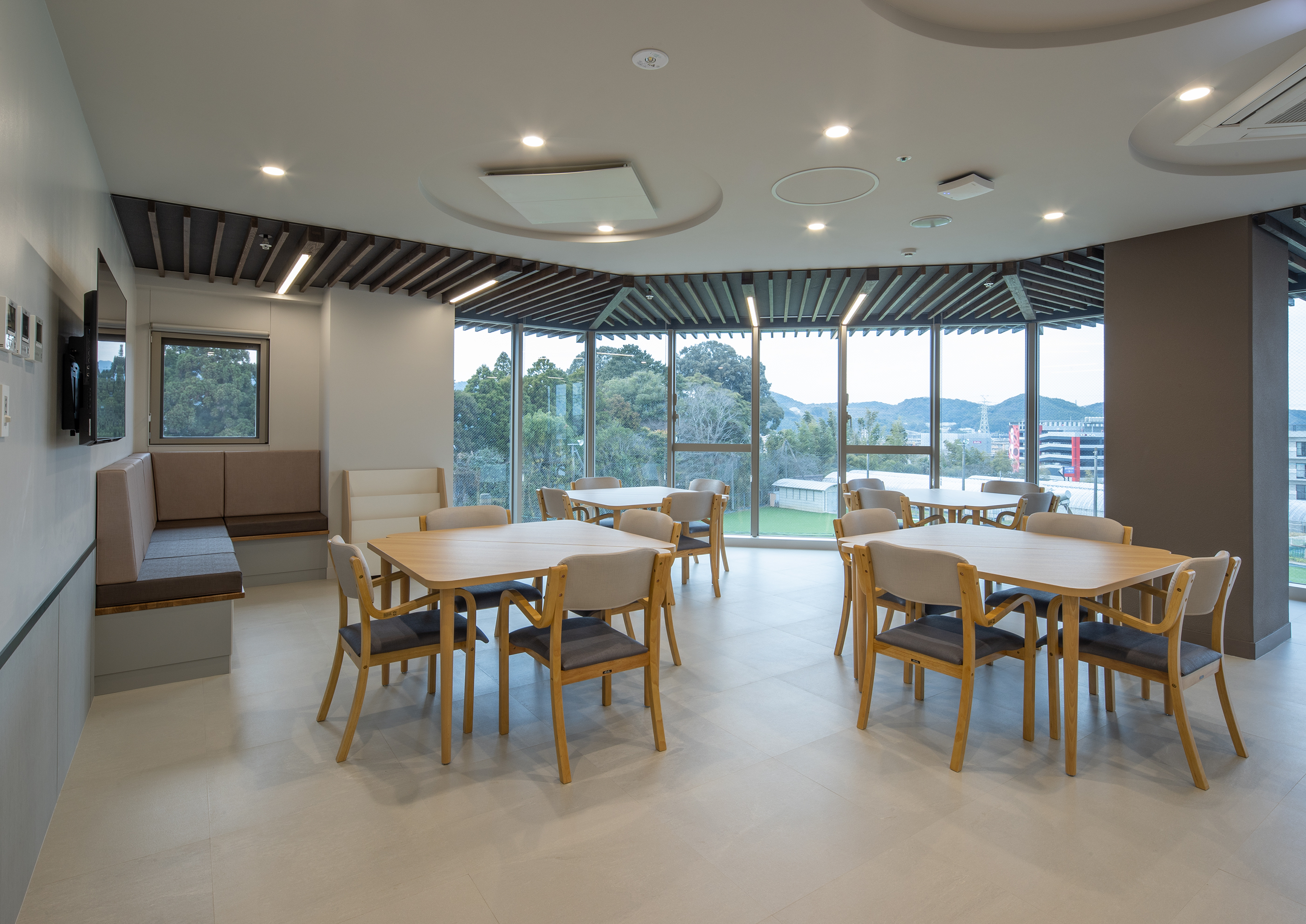 介護度が高い方にも、旅館のような設えや食事、自然や季節を感じられる景観を通じて、日々の暮らしのなかに楽しみや安らぎを感じていただける空間を目指しています。