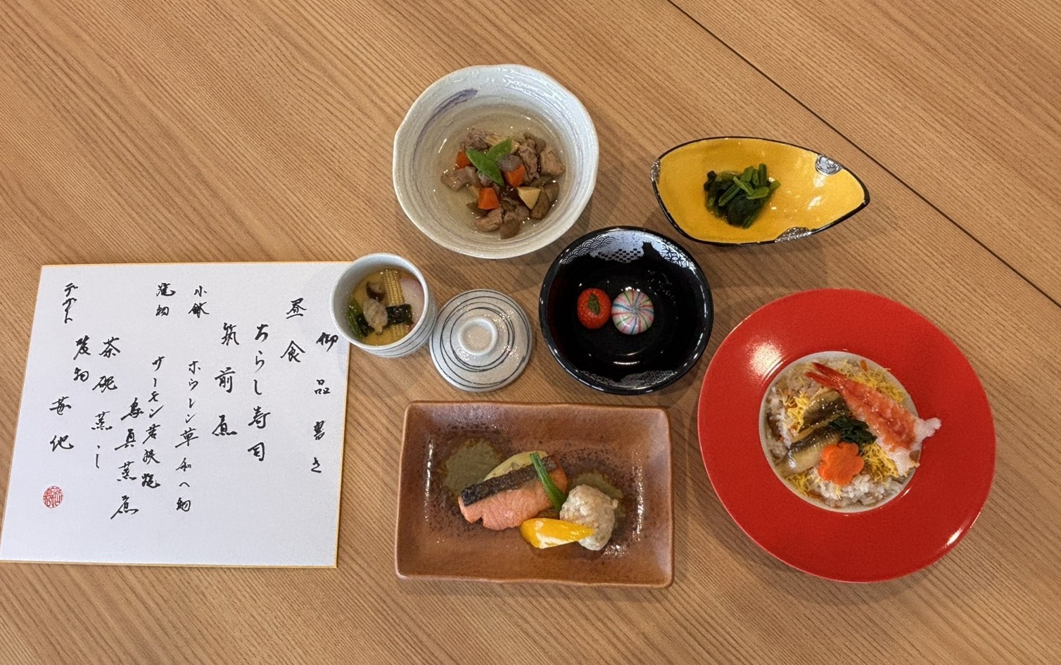 お食事は、日本料理マイスター・北九州技の達人である料理長が手がけます。日々の楽しみである食事の時間を大切にし、健康と美味しさの両立を目指したメニューを通じて、ご入居者様の暮らしに彩りを添えます。