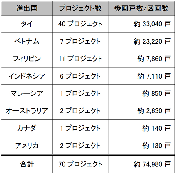 当社は現在、ASEAN諸国を中心に海外不動産事業を強化しています。今回のプロジェクトへの参画により、総計で70プロジェクト(約74,980戸)に達しました。