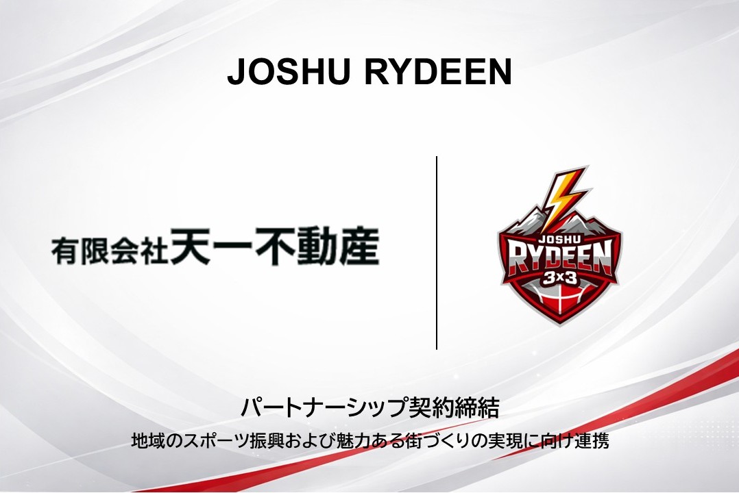 3人制女子プロバスケットボールチーム「JOSHU RYDEEN(上州ライディーン)」は、このたび有限会社天一不動産(所在地:群馬県太田市、代表取締役:天笠秀昭)と、地域のスポーツ振興および魅力ある街づくりの実現に向けたパートナーシップ契約を締結いたしましたので、お知らせいたします。