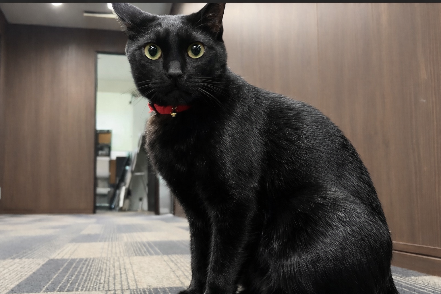 同社にて保護をした保護猫クロエ。兄弟のゴマは加賀の自宅にて迎えられている。