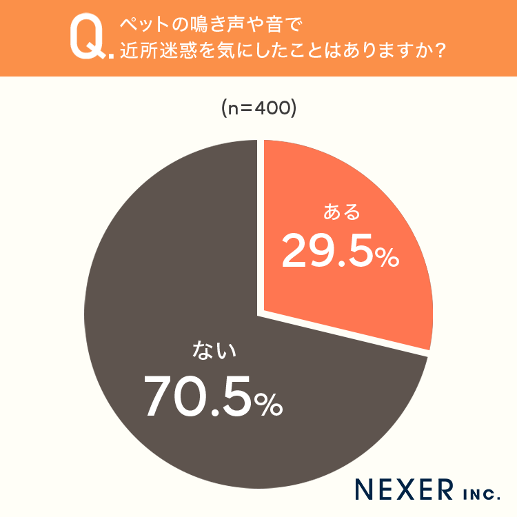 ■29.5%が「ペットの鳴き声や音で近所迷惑を気にしたことがある」と回答
