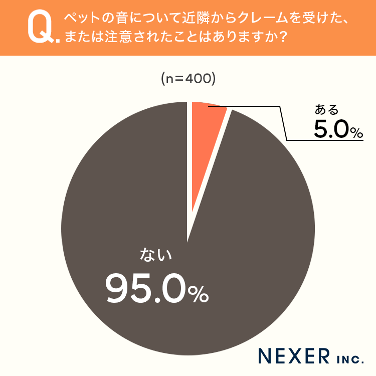 ■5.0%が「ペットの音について近隣からクレームを受けた、または注意されたことがある」と回答