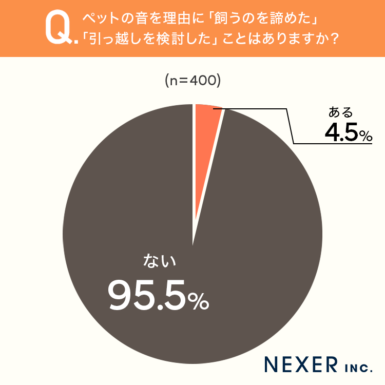 ■4.5%が「ペットの音を理由に飼うのを諦めた・引っ越しを検討したことがある」と回答