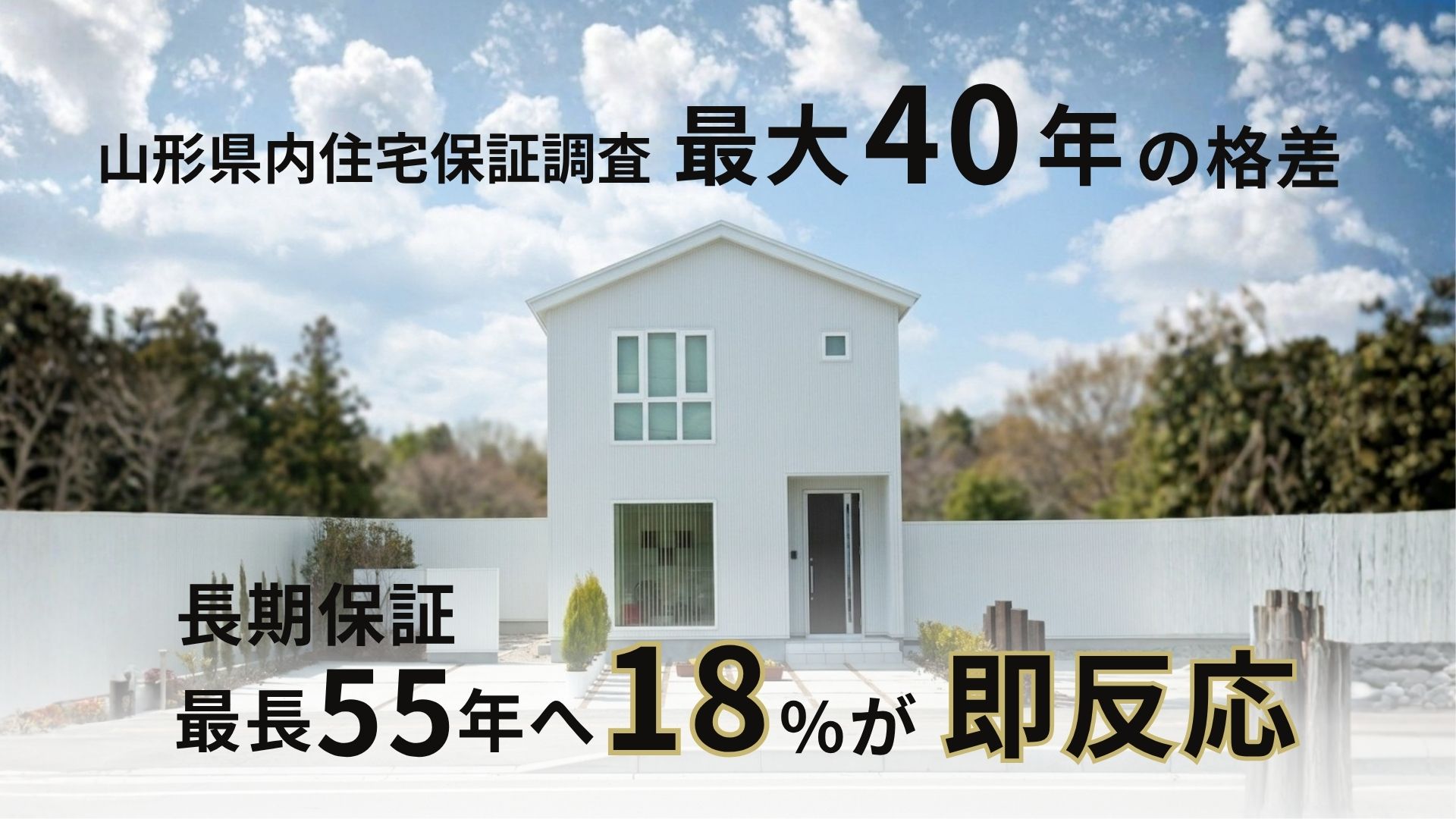 山形県内の住宅会社15社を対象とした独自調査結果。最大40年の「保証格差」と、最長55年保証への高い関心が浮き彫りに。