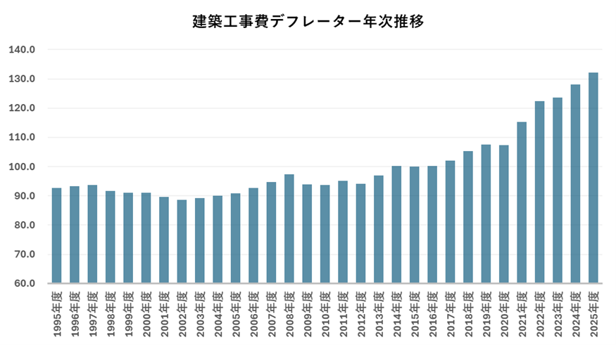 建築工事デフレーターが示す「実質コスト」の急上昇