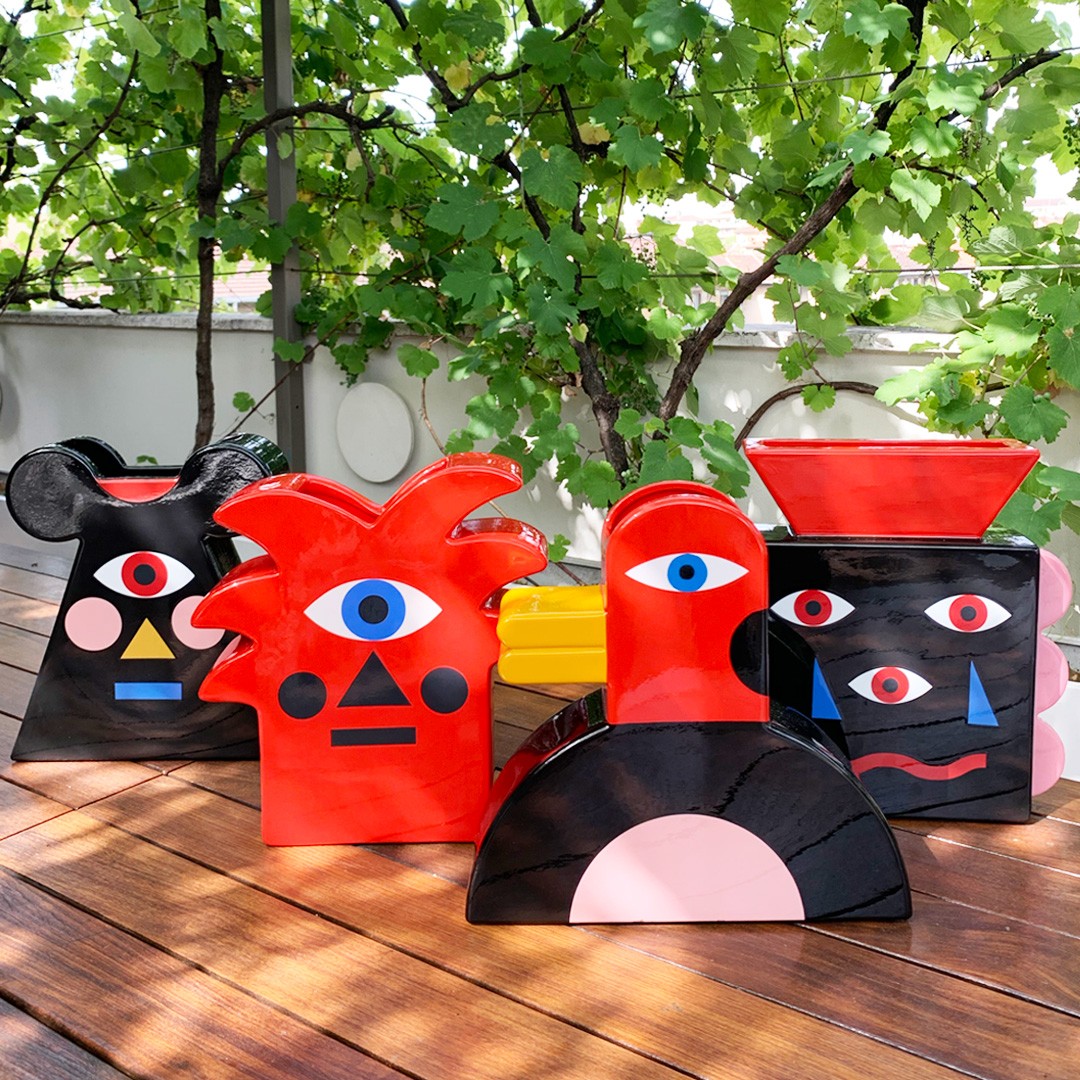 ヴェネツィア生まれのアーティスト、マルコ・オジャンが手がけたインテリア横断型の大規模コレクションです。2022年ミラノデザインウィークで初披露され、当初3点の予定が40点超に拡大。フラワーベース、キャンドルスティック、プフ、クッション、カーペット、コーヒーテーブル、ウォールクロックの全7カテゴリを展開。いずれの作品にもオジャン独自の「大胆な原色×ユーモアある幾何学形×社会的メッセージ」というデザイン哲学が貫かれています。部屋に置くだけでアートギャラリーの空気が宿る、稀有なコレクションです。