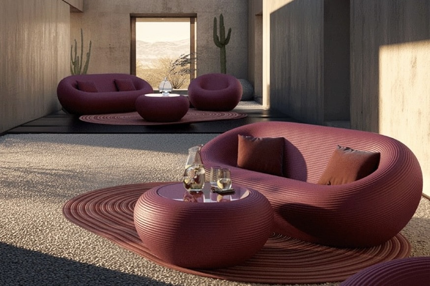 日本語の「波」が由来の本コレクションは、水面の波紋や巣を思わせる有機的なフォルムが特徴のアウトドアシリーズです。アームチェアからカーペットまで、空間をトータルに彩る5つのアイテムを展開。ソファ、アームチェアには排水構造を内蔵し、屋外での利便性を追求しています。素材には、環境に配慮した『再生可能ポリエチレン』を採用。原料に色を練り込む『バッチ・カラー』手法を用い、屋外使用でも色あせしにくい工夫を施しています。カラーは、洗練された単色3種に加え、アップサイクル素材による「ミックス」3種の計6色を展開しています。