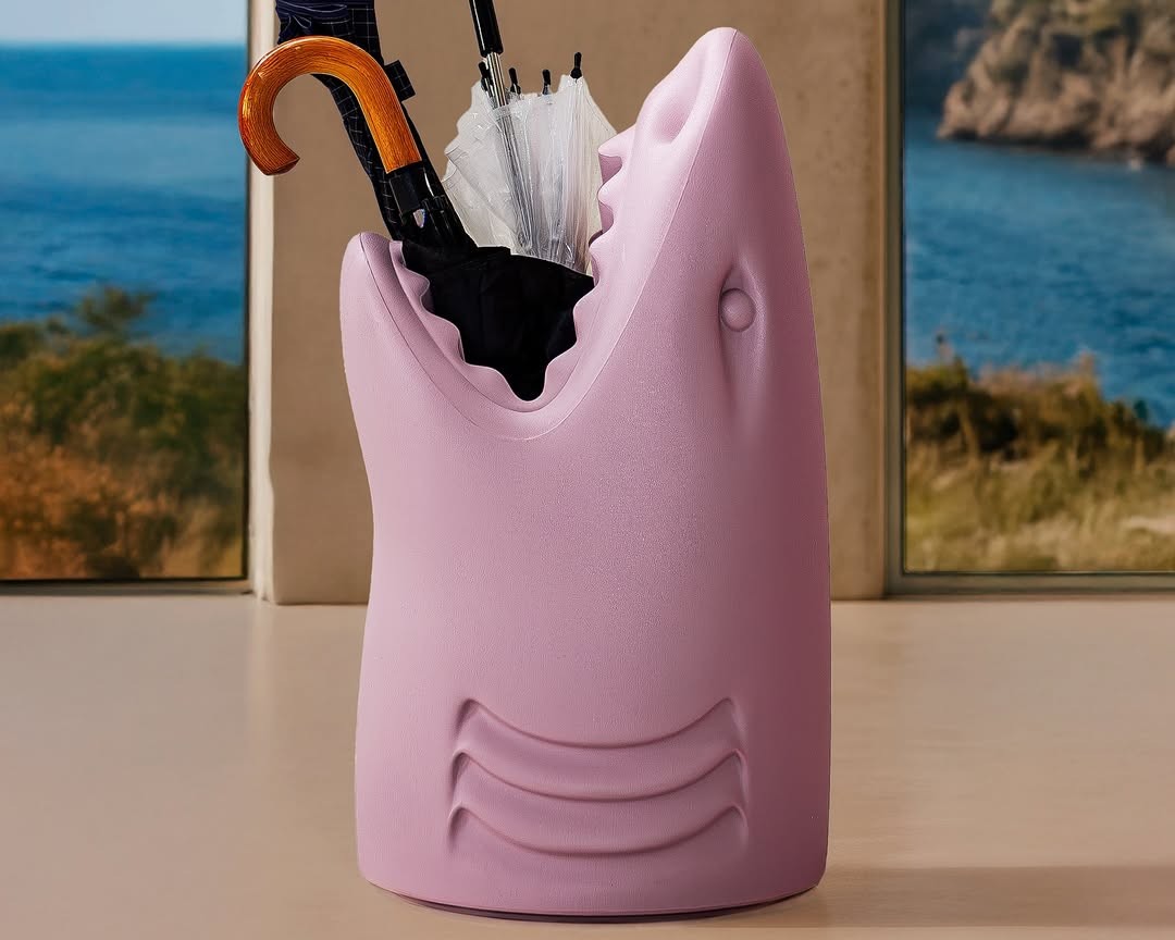 サメの頭部を模したコレクションは、傘立てやゴミ箱、シャンパンクーラーなど、自由な用途で暮らしを彩ります。実用性を超え、日常にエッジの効いたユーモアと驚きをもたらす、qeebooらしい遊び心に溢れたプロダクトです。
