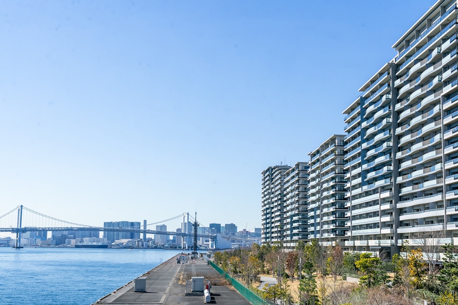 晴海:都営大江戸線、東京メトロ有楽町線が利用可能で、東京駅、銀座駅などビジネスエリアへのアクセスの良さが大きな魅力です。2025年に入居を開始したHARUMI FLAG SKY DUOをはじめ、築年数が浅く共有施設などが充実した高級マンションが多く集まっています。