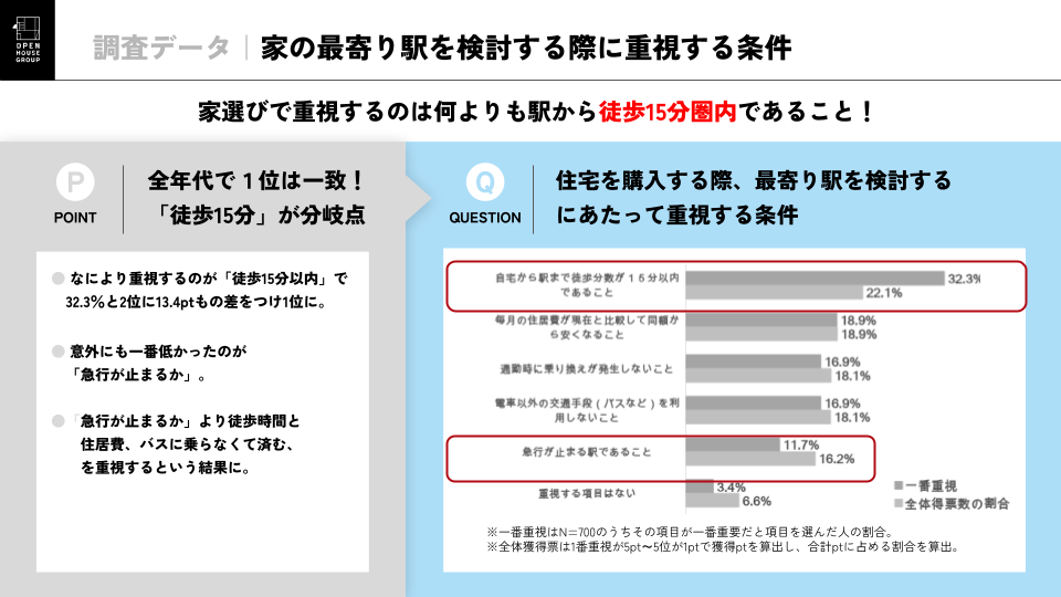 家選びで重視するのは何よりも駅から徒歩15分圏内であること!