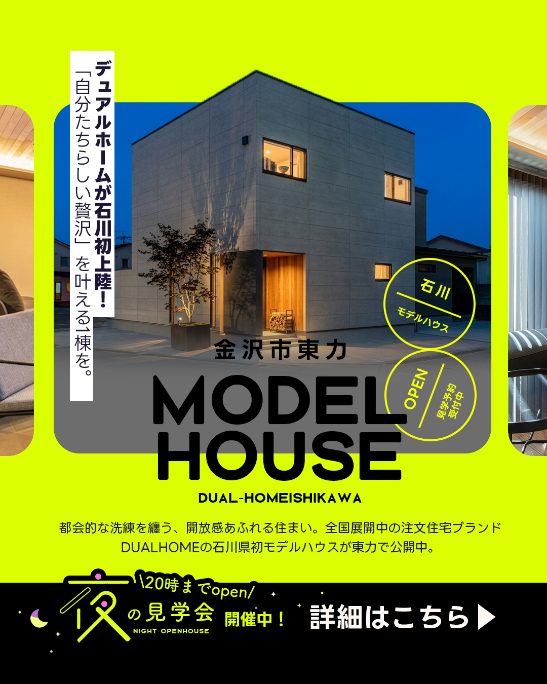 「デザイン×性能」をテーマに北海道で誕生し、全国へ展開を広げる注文住宅ブランド『DUAL HOME(デュアルホーム)』(本部:株式会社アーキテックプランニング)。石川県内において同ブランドのフランチャイズ展開を担うDUAL HOME 石川店(運営:株式会社イング、本社:石川県小松市)は、現在、金沢市東力にて「東力モデルハウス」を好評公開中です。
