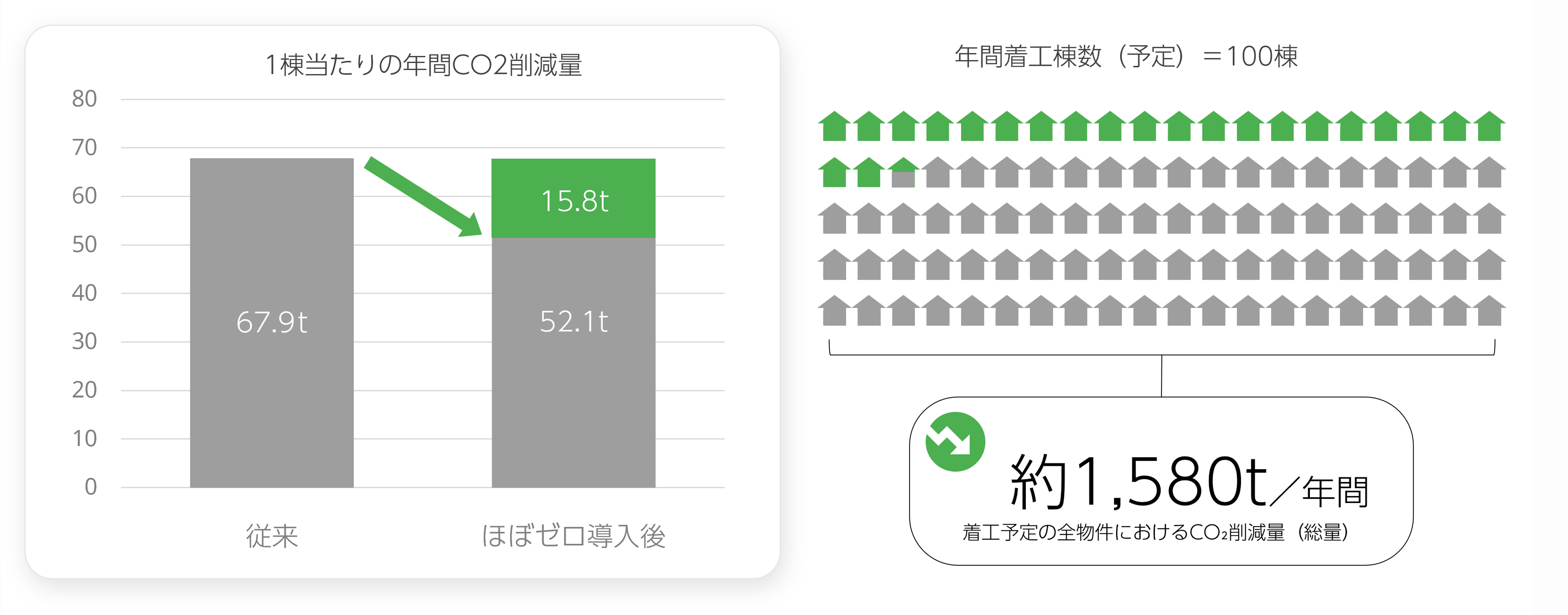 モデル棟で23.3%削減、年間約1,580トンのCO2削減見込み