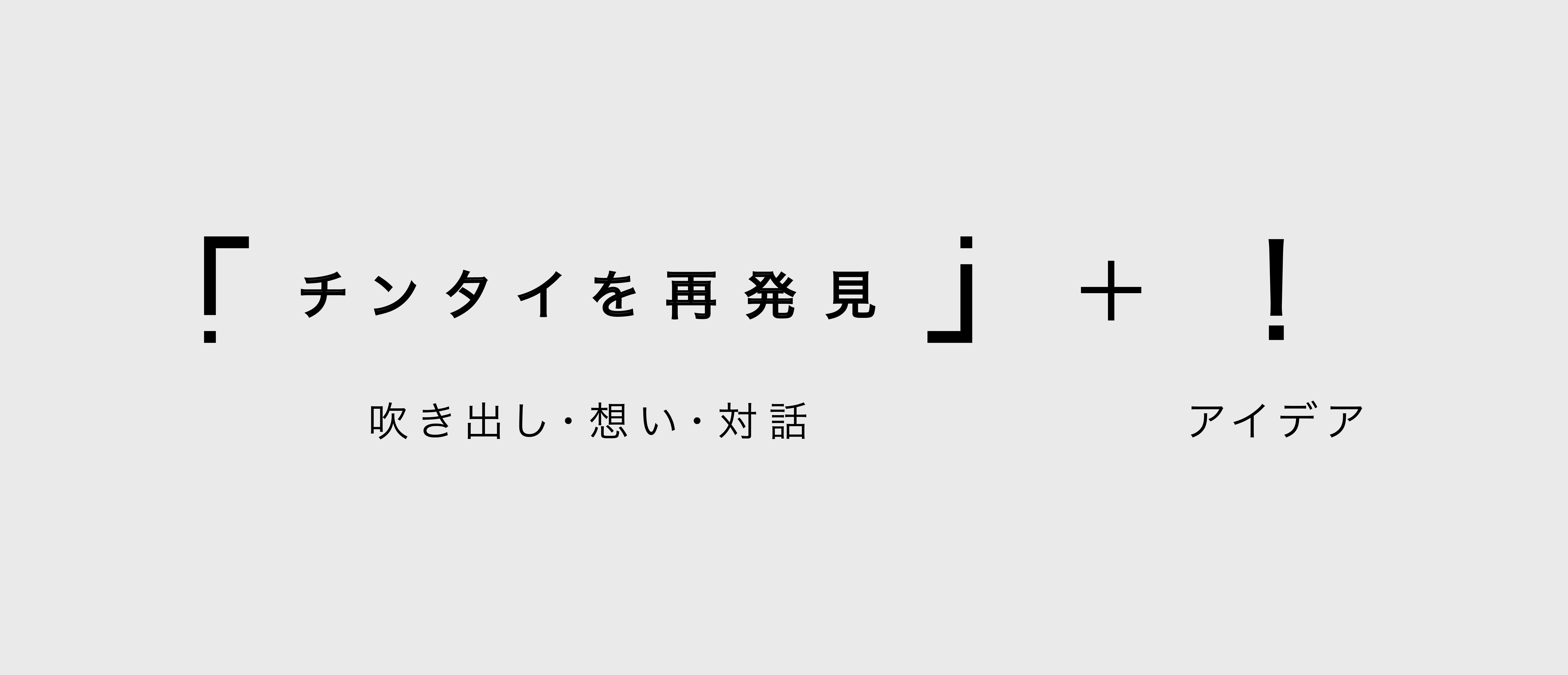 今回のロゴは、ちんたい研究会のフィロソフィーを象徴する「 」(かぎ括弧)と「!」(感嘆符)を組み合わせて構成しています。