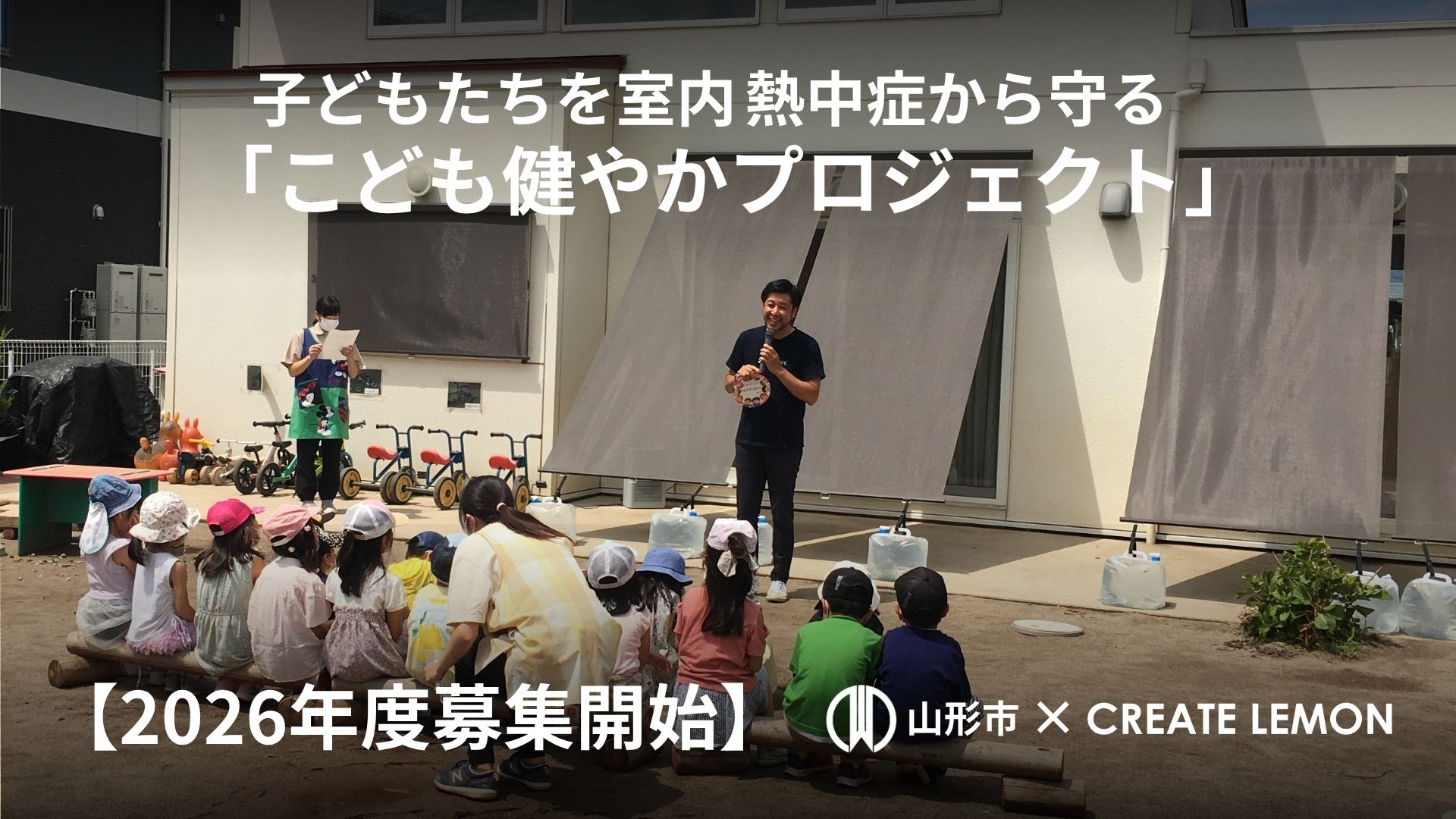 株式会社クリエイト礼文(本社:山形県山形市、代表取締役CEO:大場友和)は、山形市と連携し、保育施設の室内熱中症対策として外付け日よけ「スタイルシェード」を無償で設置する「こども健やかプロジェクト」の2026年度寄附先募集を4月20日(月)より開始しました。