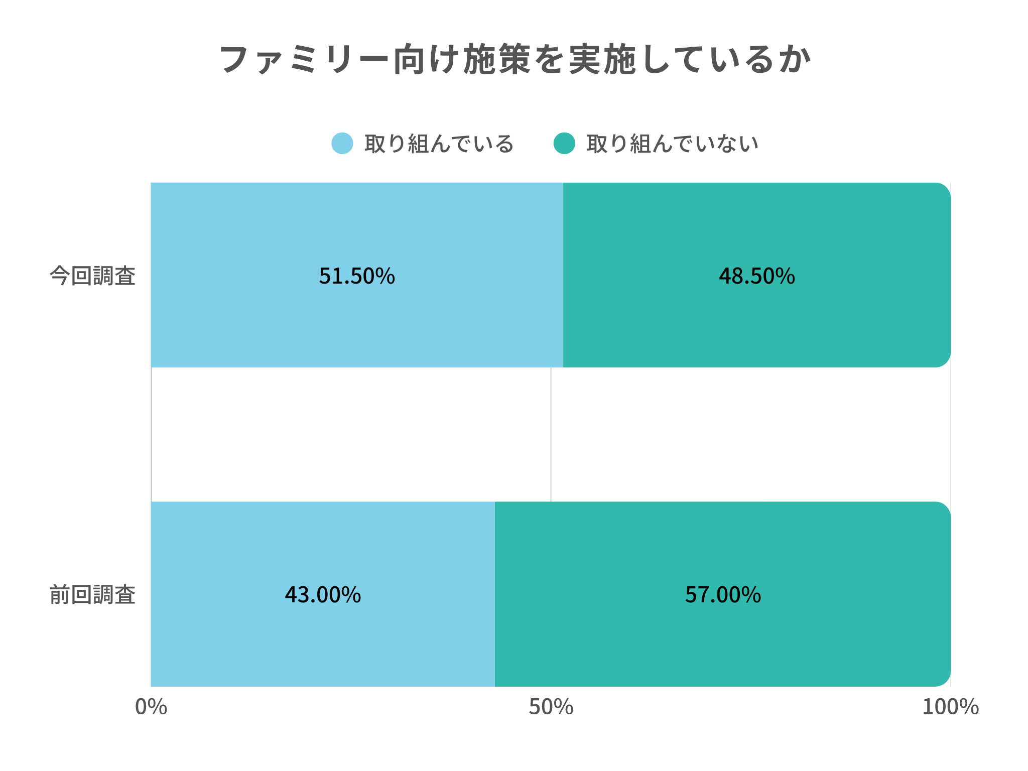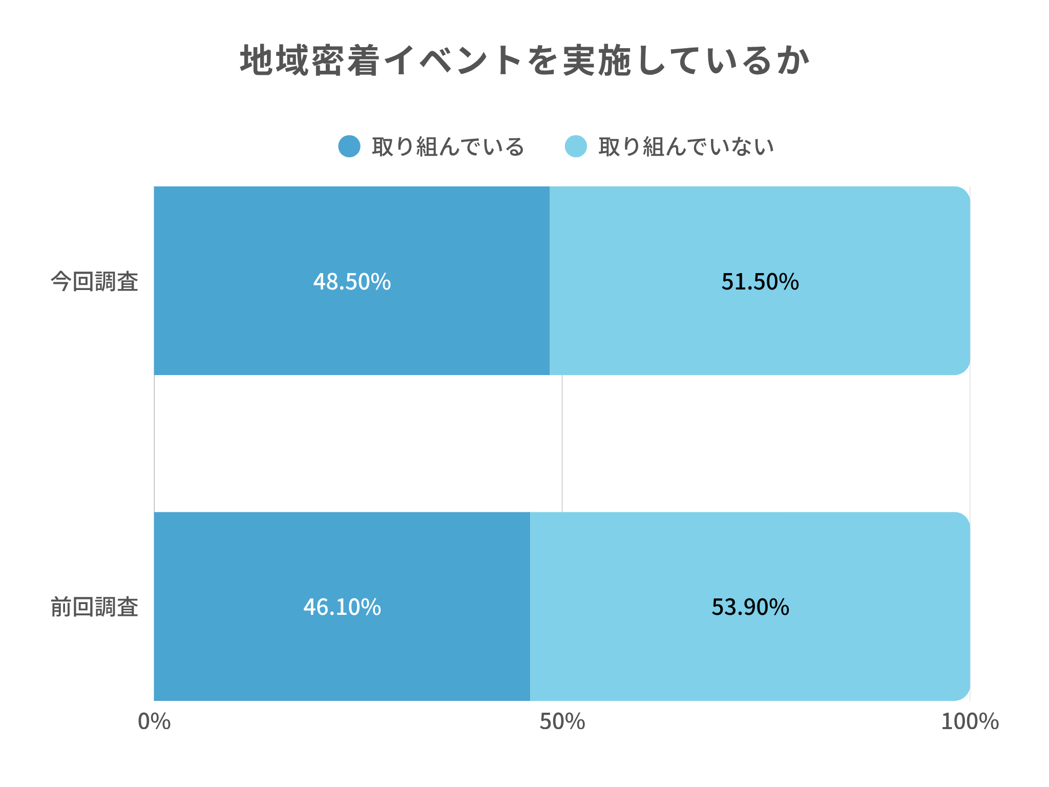 • 地域密着イベントは48.5%(前回比+2.4pt)、ファミリー向け施策は51.5%(同+8.5pt)といずれも伸長