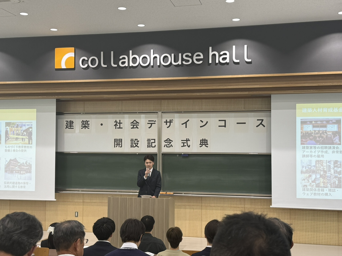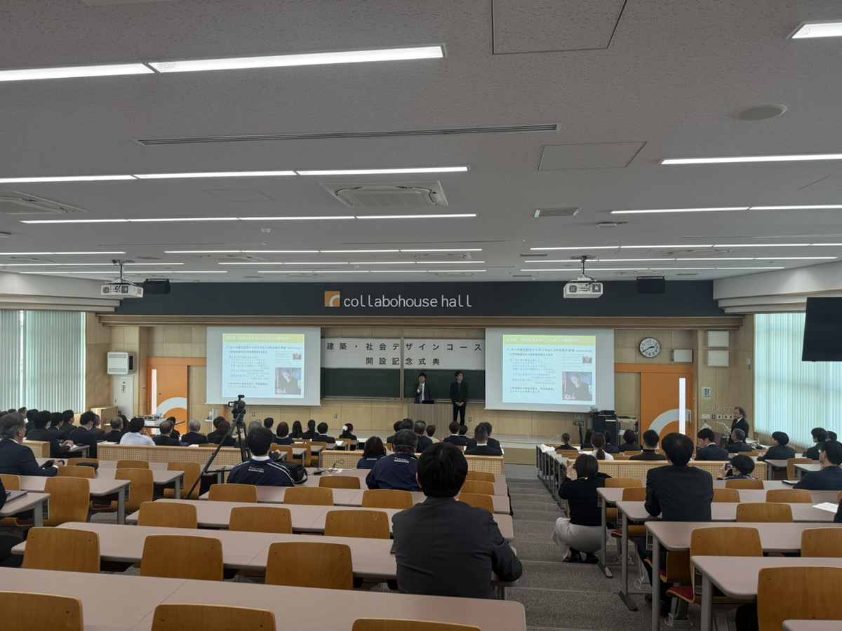 本コースは、建築設計にとどまらず、地域社会やまちづくりまでを包括的に捉える人材育成を目的としており、人口減少や地域課題が顕在化する中で、実践的な知見を持つ人材の輩出が期待されています。今回の開設記念式典は、こうした取り組みの第一歩として、産学連携しながら地域に根ざした建築・まちづくりを推進していく姿勢を示す機会となりました。