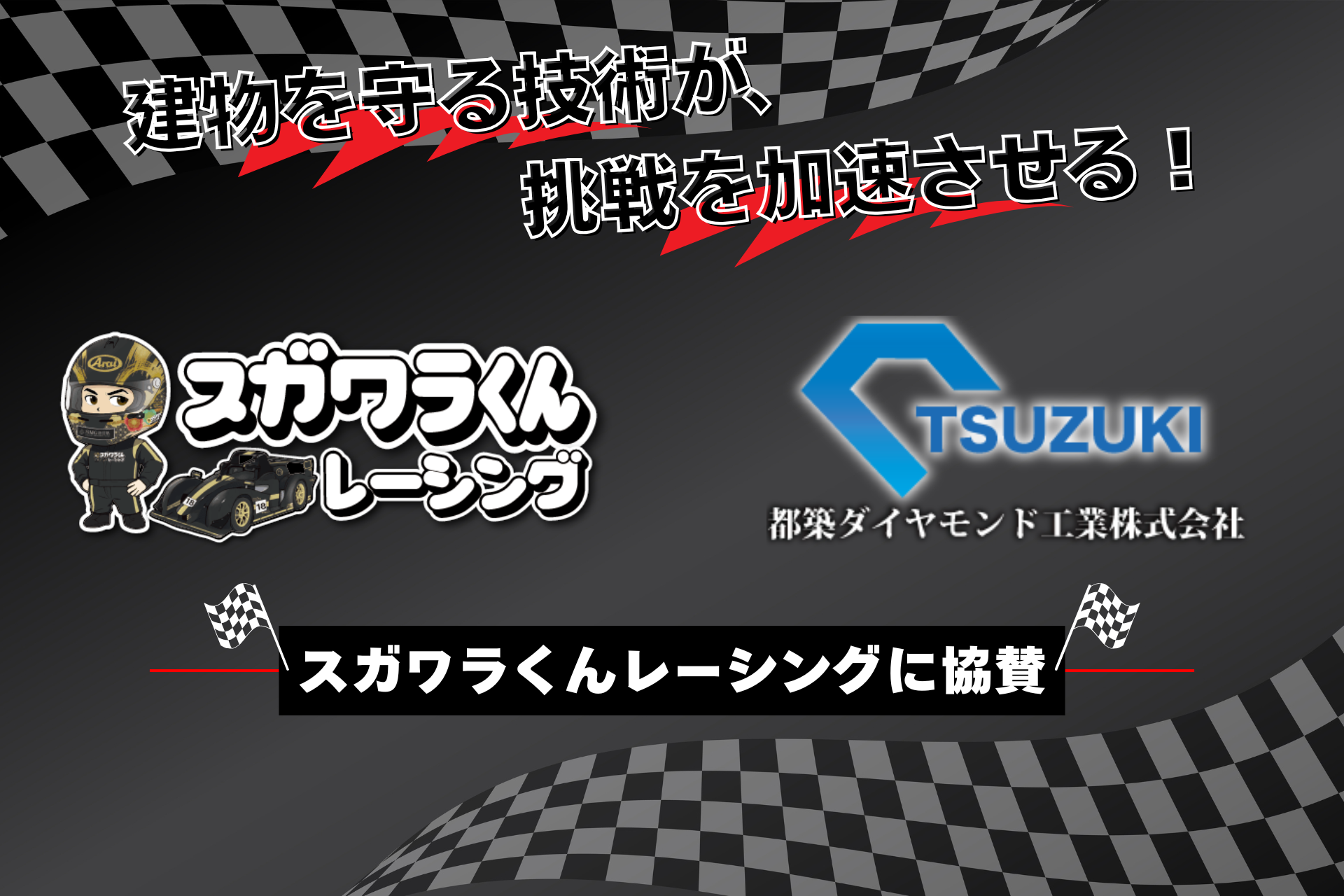 X線探査・コアボーリングを手がける都築ダイヤモンド工業株式会社(本社:大阪府大阪市、代表取締役:都築孝己)は、ビジネス系YouTuber「脱・税理士スガワラくん」こと菅原由一氏が発足させたモータースポーツチーム「スガワラくんレーシング」の活動に賛同し、スポンサーとして協賛することをお知らせいたします。