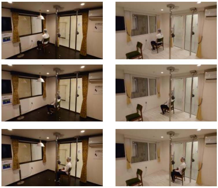 「昔の家(断熱等級2)」と「これからの家(断熱等級6)」で、窓と被験者の距離を変え、それぞれの場所で脳波を計測